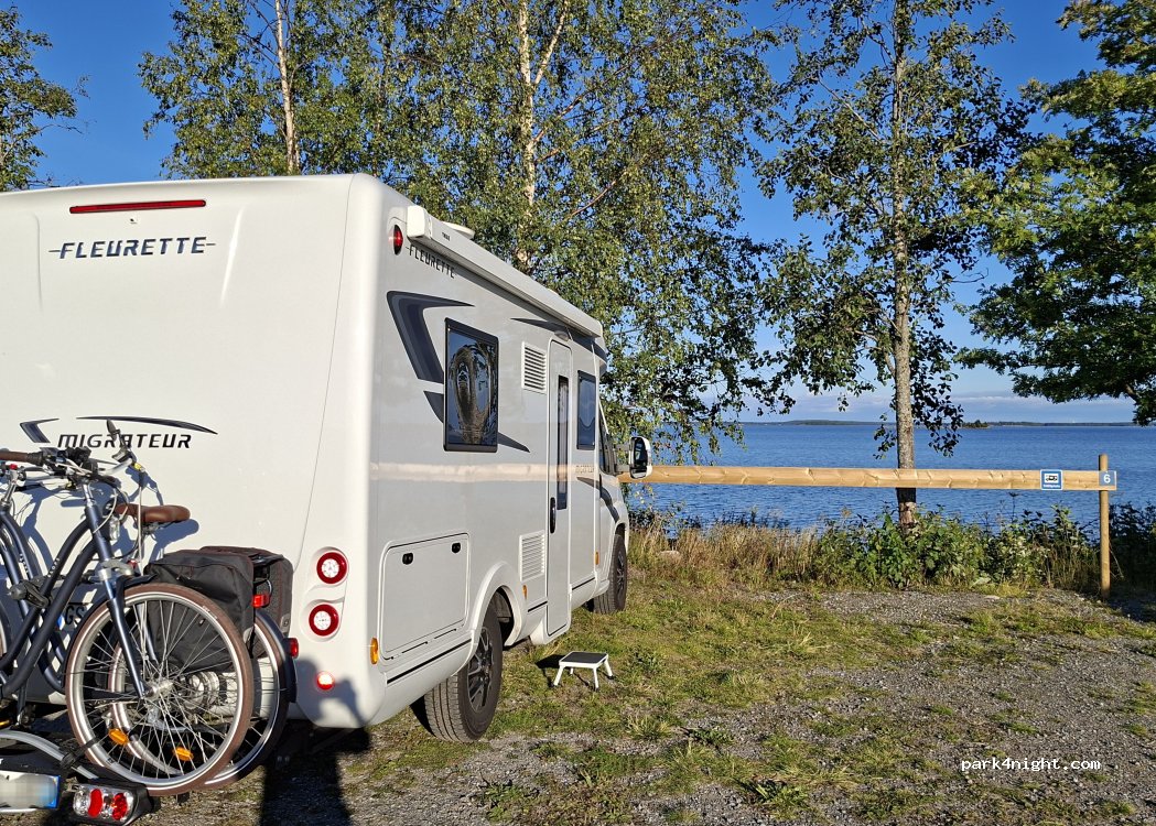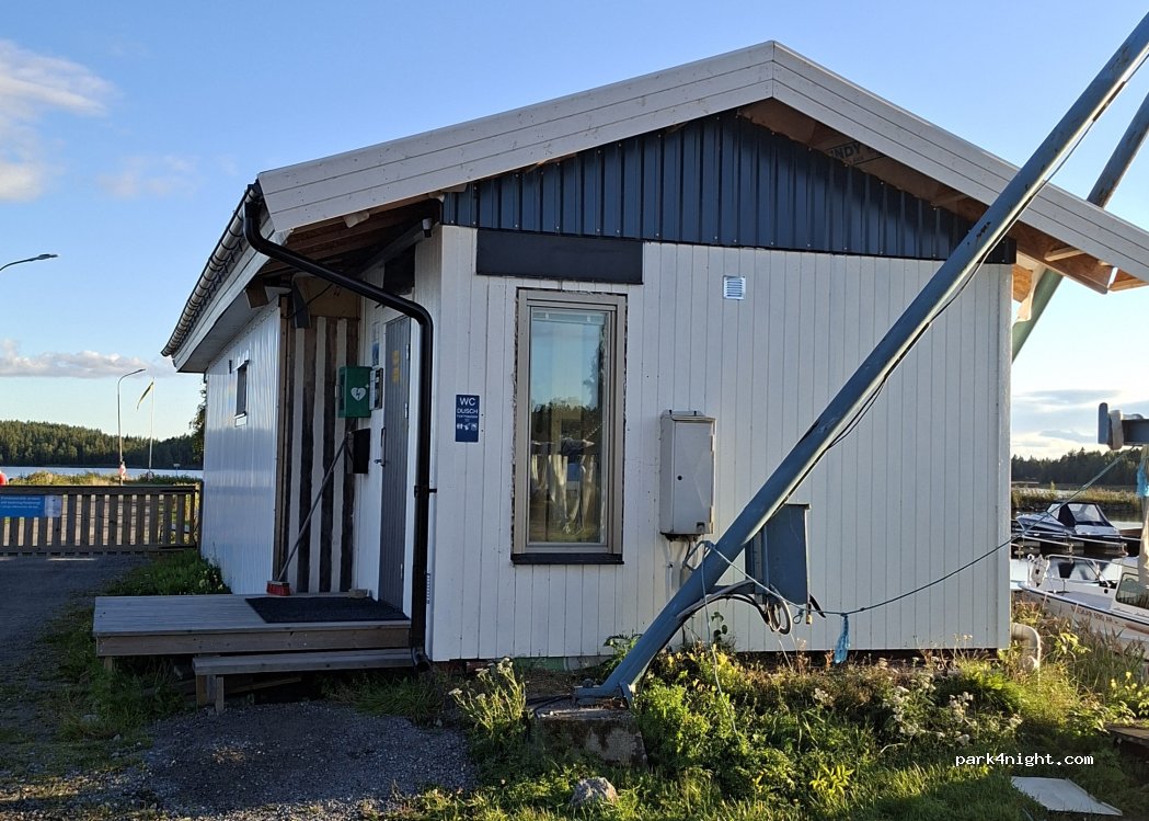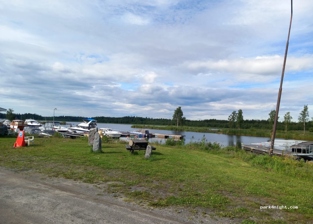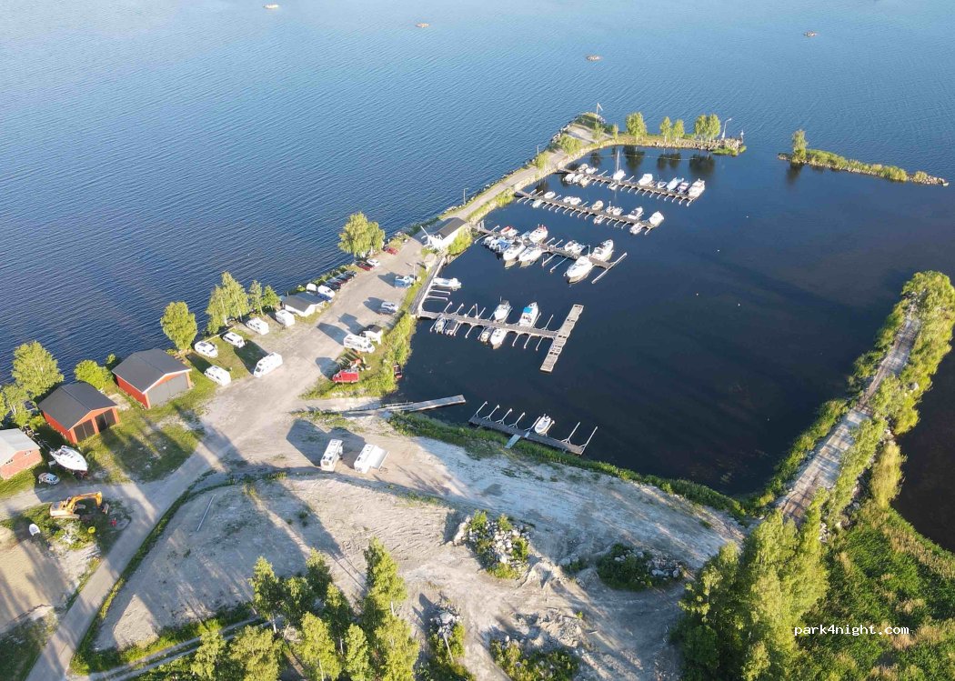 Parking allowed until the snow arrives, no plowing during winter. Service building closed winter time, i.e all facilities; bathroom, kitchen and laundry are closed from now until spring. It is not allowed to leave garbage on the premises. The fresh water is also temporarily unavailable during winter. Dry toilet is available. Motor home and camper parking area by the sea in a calm rural community. The parking area is located in a friendly small marina, with closed gates from 8pm - 6am. (Optional to get a security tag for passing during closed hours, with a deposit fee). 5 grass pitches with electricity, 5 gravel pitches without electricity. No reservations possible. Free wi-fi in the marina. Payments are handled through the app “GOMARINA”. When payment is settled you’ll get access to the facilities. When using the code press * before and after you enter the code.