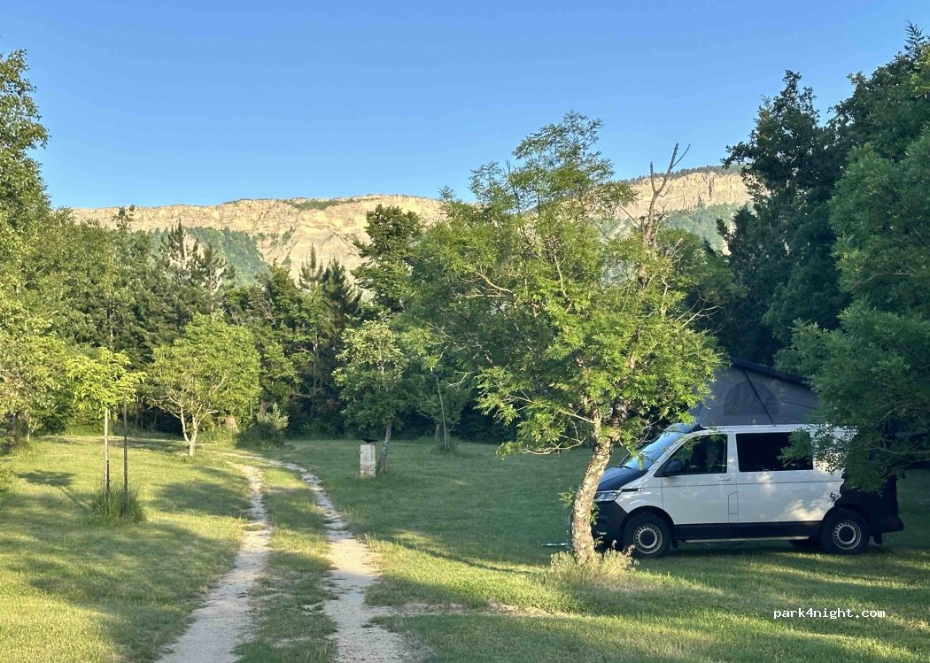 Aire naturelle exceptionnelle pour qui cherche calme, place et tranquillité, avec des toilettes et douches très propres. On arrive, on s'installe où on veut et Gabriel, le gérant, passe le soir.. Un homme charmant, agréable et disponible. Séjour en août 2025