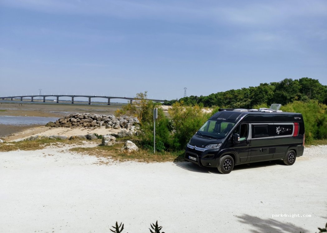 Super endroit pour passer la nuit. Parking calme, au bord d’une petite plage avec vue sur le pont de la Seudre. Nous étions plusieurs van et un camping-car. Au top !