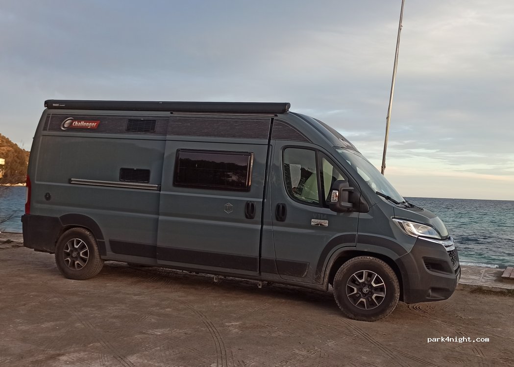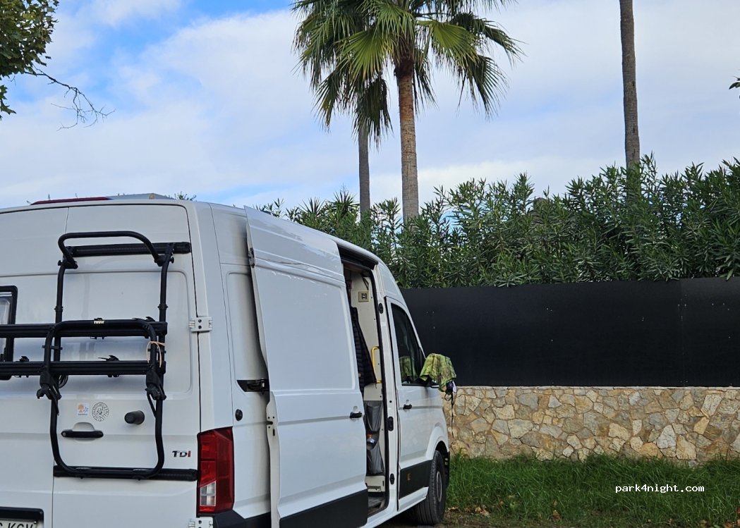 Grand parking avec de nombreuses places. Nuit correcte, malgré le bruit des nombreux véhicules qui passent sur la route. Seul avantage la douche de la plage et le petit bar qui ferme ses portes à 18h, où l'on profite de la vue !!