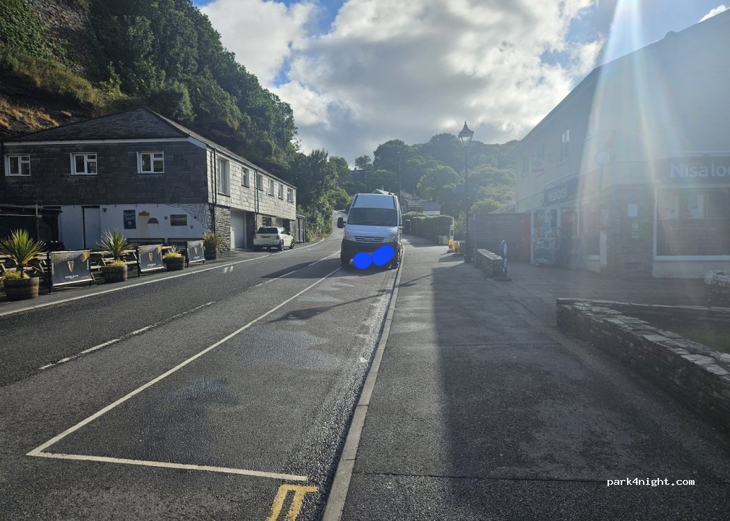 Couple of bays with 8am-6pm 30mins, no returns within 2 hours restrictions - perfect for a discrete overnight stay having parked in the national trust lot next door during daytime.
