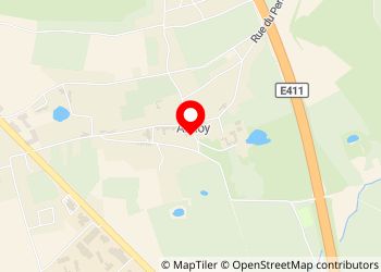 Place du village d'Andoy, légèrement en pente. Très calme et proche de l'autoroute donc parfait pour une halte sur la route. Pas de commerces dans le village et peu de bus pour Namur.