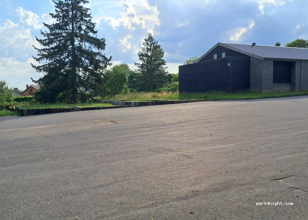 Juste un parking en pente mais qui peut dépanner pour une nuit. Sans services mais proche des commerces sur le N4