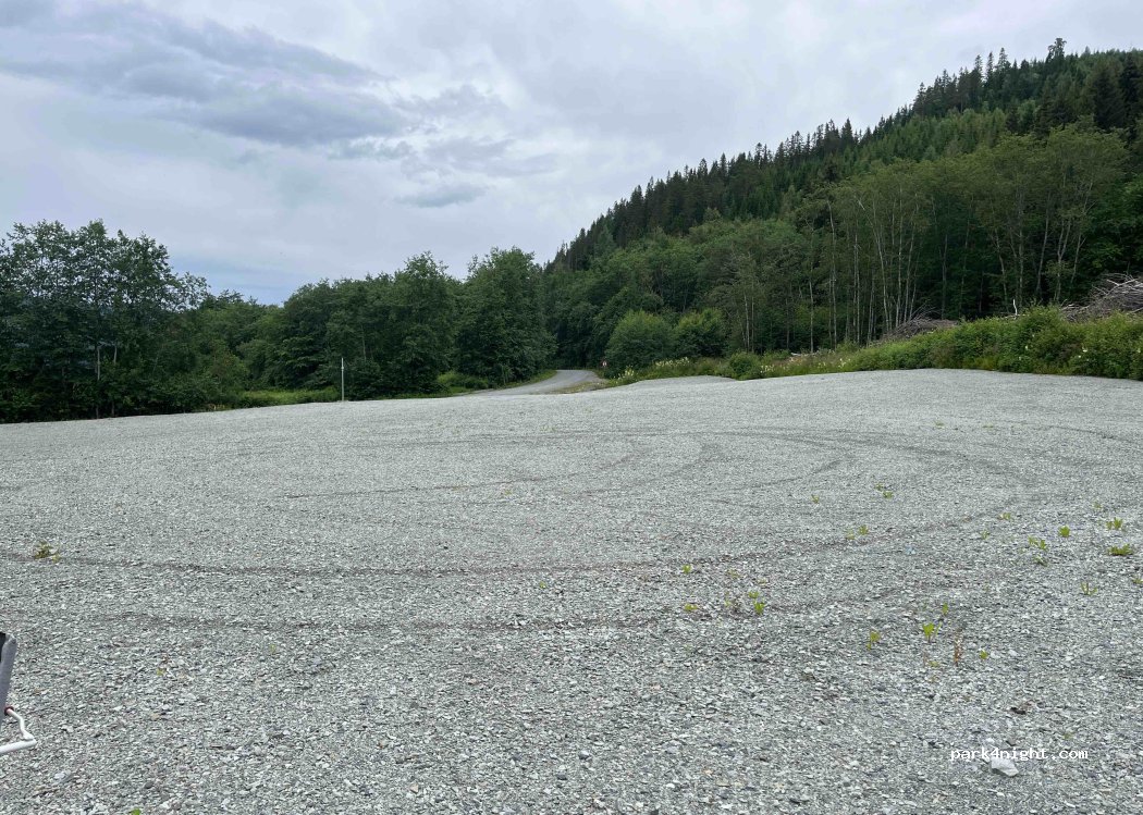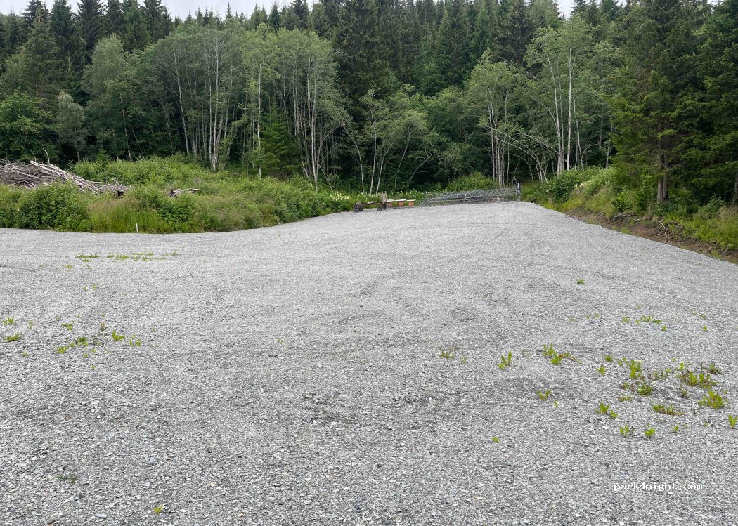 Ein schöner Schotter Platz mit der Möglichkeit, eine kleine Skischanze zu besichtigen. Dort gibt’s auch sehr saubere Toiletten. Wir hatten dort eine ruhige Nacht. Kein Durchgangsverkehr.