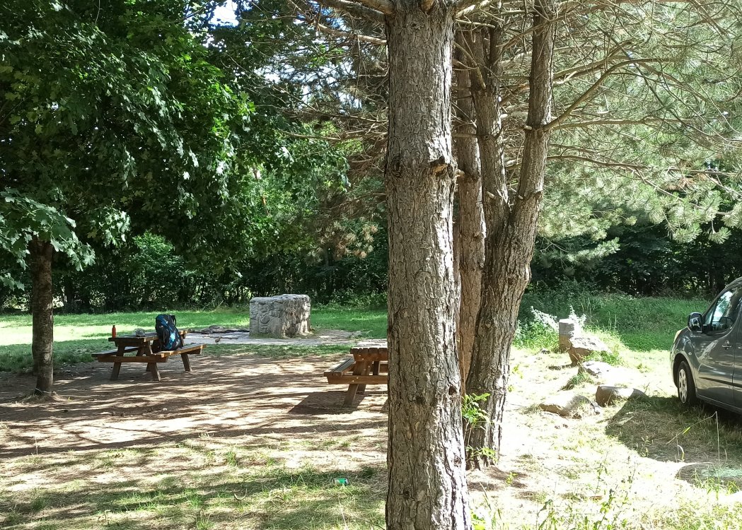 Perfecte per parar a dinar o descansar, taules amb ombra i riuet al costat, però a la tarda hi ha poca ombra per la furgo. No hi hem dormit, però se sent molt la carretera nacional que passa pel costat. No hi ha font.