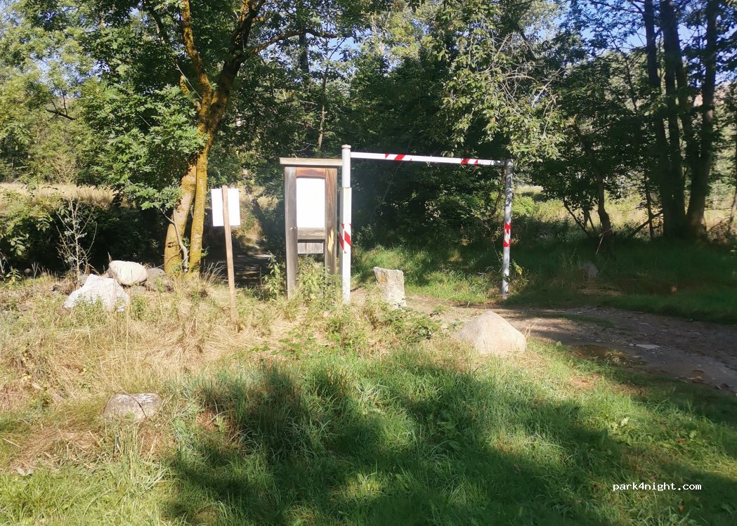 Bel endroit de pique-nique pour les locaux au bord d'un ruisseau avec un petit barrage où l'on peut plonger dans l'eau. BBQ, poubelles, tables de pique-nique. Nous n’avons pas dormi ici, mais je pense que ce serait tout à fait bien. Il y a une barrière de 2,2 m pour accéder à la place de parking.