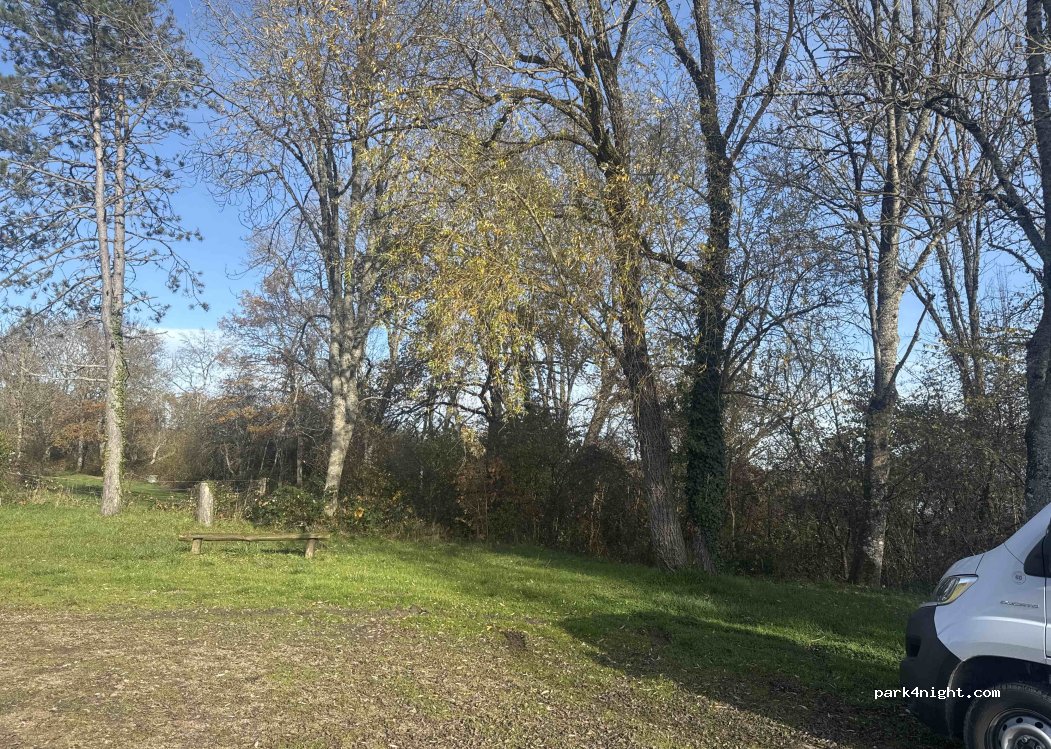 Coin de verdure très sympa pour pique-niquer (notre cas) et sans doute passer une nuit. Passage de véhicules à proximité mais bon je pense que la nuit, il n'y en pas tant que ça.