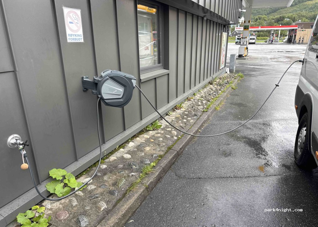 Free drinking water, wastewater, and toilet disposal - Drinking water is available at the side of the petrol station building, not at the disposal station (key from staff)