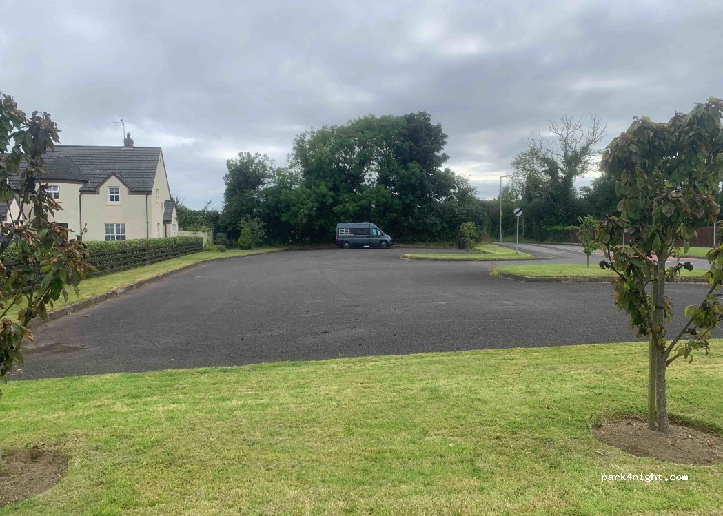 Kleiner Parkplatz am Dorfrand. Ebener, befestigter Untergrund und ruhig. Ausgezeichnetes 4G-Signal.