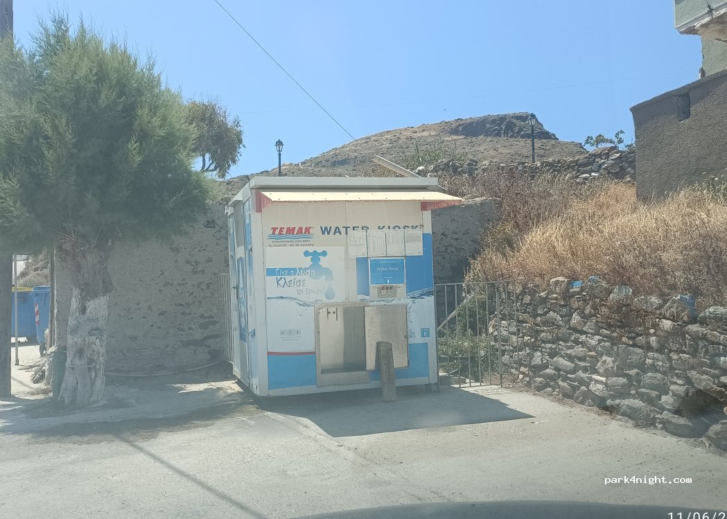Στη 2η φωτογραφία μια ειδική συσκευή που καθαρίζει το νερό από τα πολλά άλατα και το κάνει πόσιμο. Κάθε πάτημα του πράσινου κουμπιού δίνει 5 λίτρα. Το κόκκινο κουμπί είναι στοπ.