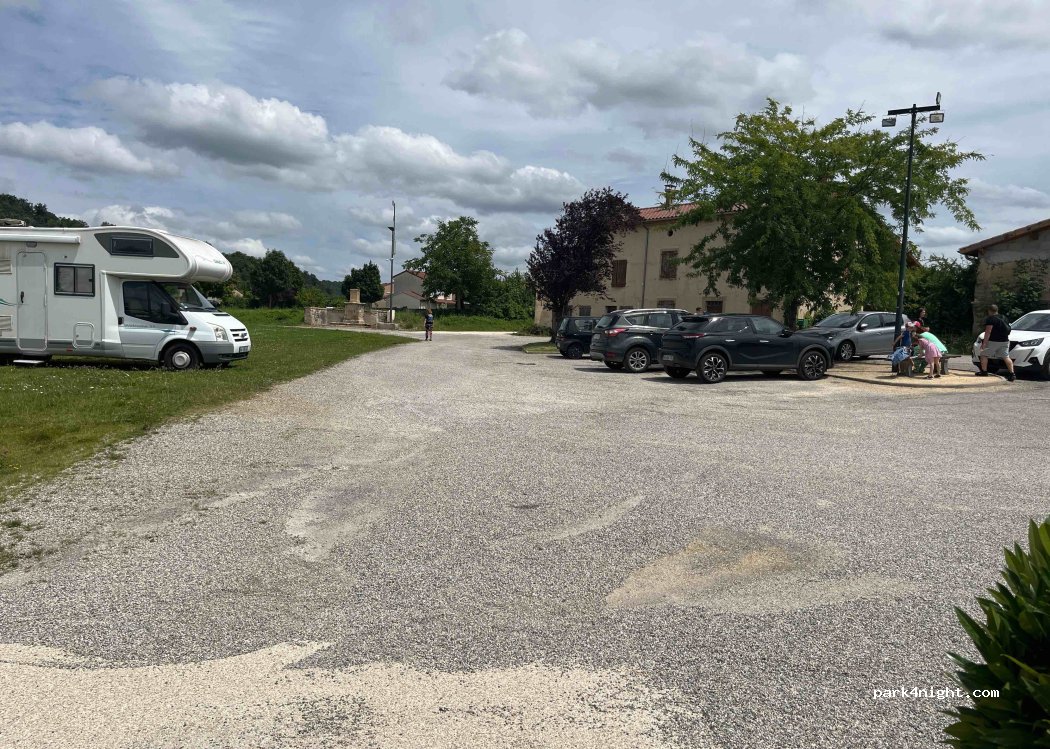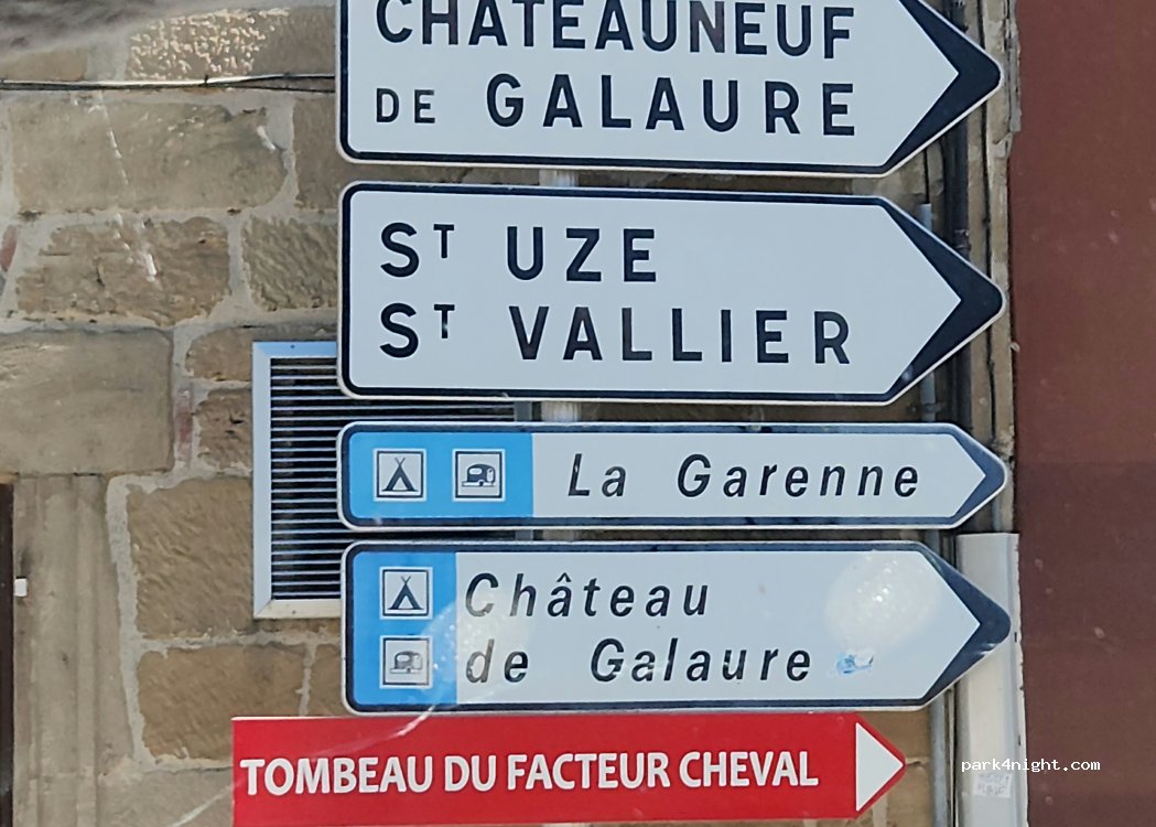 Grand parking avec toilettes. Nous avons stationné aisément avec notre remorque. Avons pu voir le tombeau du facteur cheval. Un grand merci pour nous accepter et accueillir.