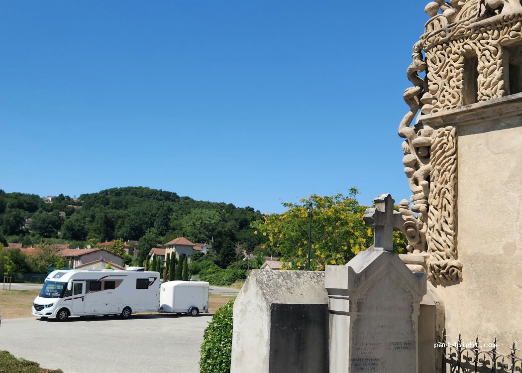 Zone pratique pour placer son van. Attention, malgré que ce soit un cimetière à côté, c’est un lieu touristique dû à la tombe du Facteur Cheval. Vous ne serez donc pas seuls. Possibilité de trier ses poubelles, de remplir sa gourde d’eau potable… à proximité de quelques petites randonnées !