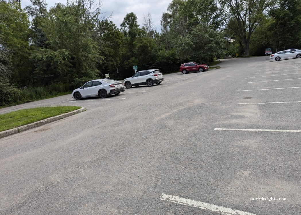 A parking lot located next to a park and campground. Very quiet overnight, lots of coming and going until dark. One of our bikes was stolen overnight. Locks cut.