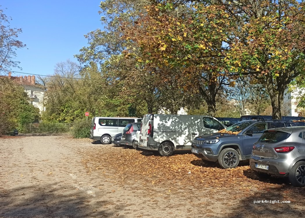 Parking ombragé gratuit en bordure d'un joli parc. A 20 minutes à pied du centre historique de Dijon, ville magnifique