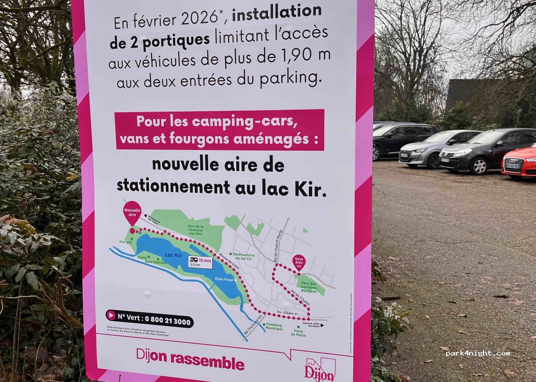 parking non accessible à partir de février 2026 une barrière à 1,90m va être installé … Un panneau sur place indique de bien vouloir aller sur l’aire de stationnement du lac kir (loin du centre ville …)