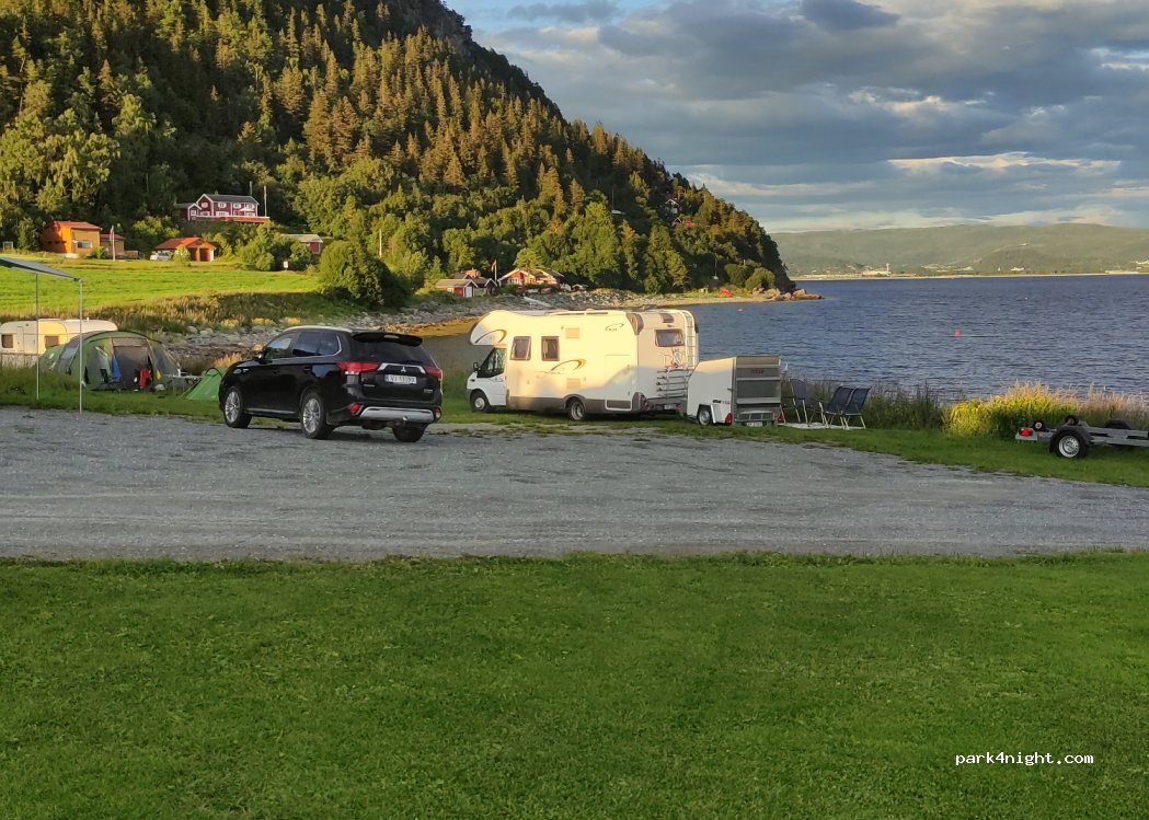 Velvang Østre Camping. Located right on the fjord, mainly for long-term campers, but I think around 5-7 pitches for motorhomes are possible. Private operator, very friendly and helpful when looking for a campsite, as the terrain is a bit sloping.