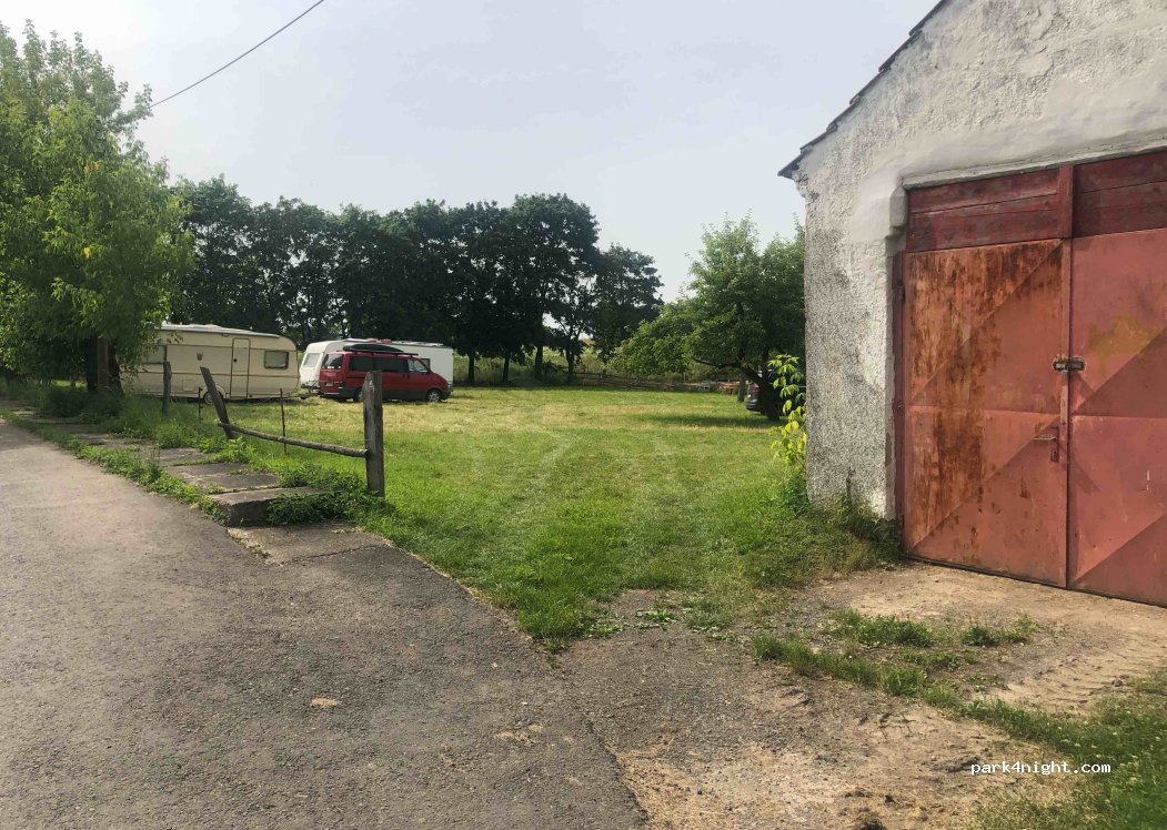 Große, autarke, leicht abschüssige Wiese ohne Anmeldung nutzbar. Kette wegnehmen, Platz suchen und bitte Kette wieder schließen. Super ruhige Lage, sehr nette Eigentümer, Platz für mind. 10 Camper/Wohnwagen, Freibad im Nachbarort.