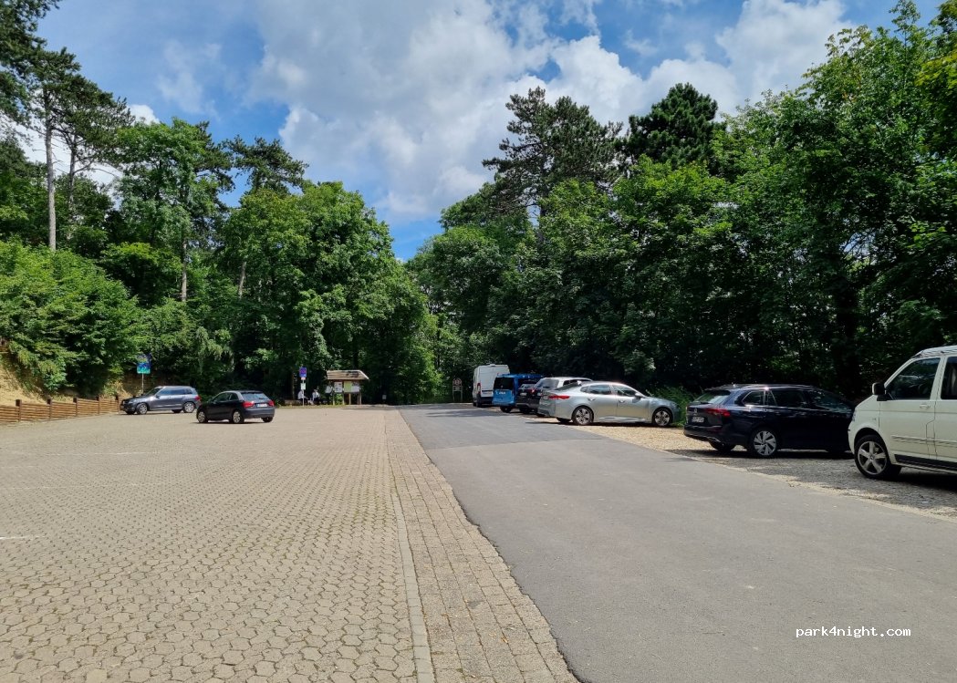 Calm area. day and night parking up on a forest hill. Perfekt a sunny day with possibility to parking in shadow. A old tower with a restaurant is near. Perfekt for dogs with lot of walking rout