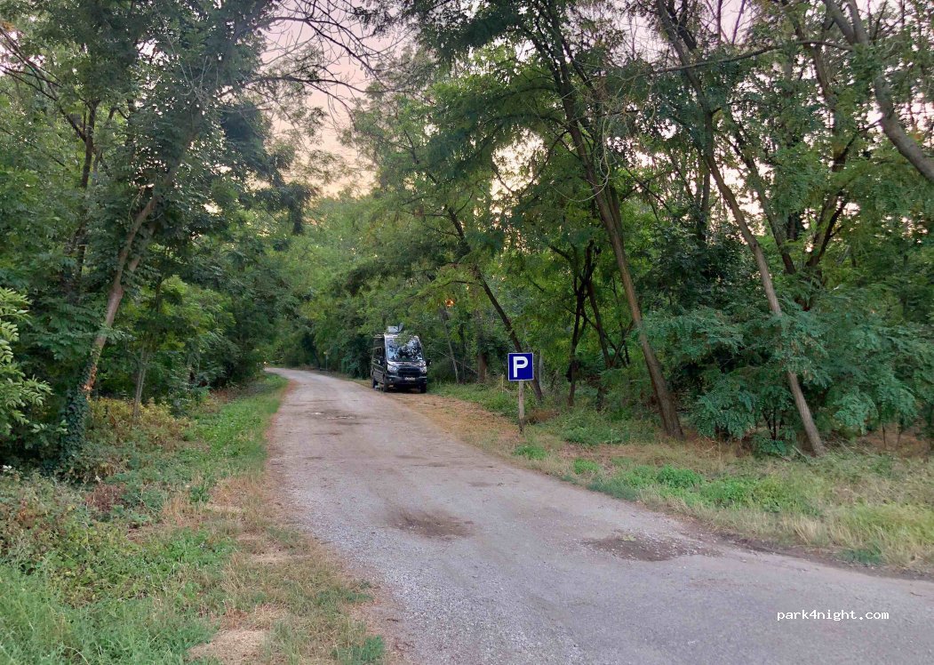 Ein weiterer Parkplatz ohne Einschränkungen, mit dem Vorteil, einigermaßen beschattet zu sein. Höhenbegrenzung nur wegen einiger tief hängender Äste. Mit entsprechender Vorsicht geht auch mehr.