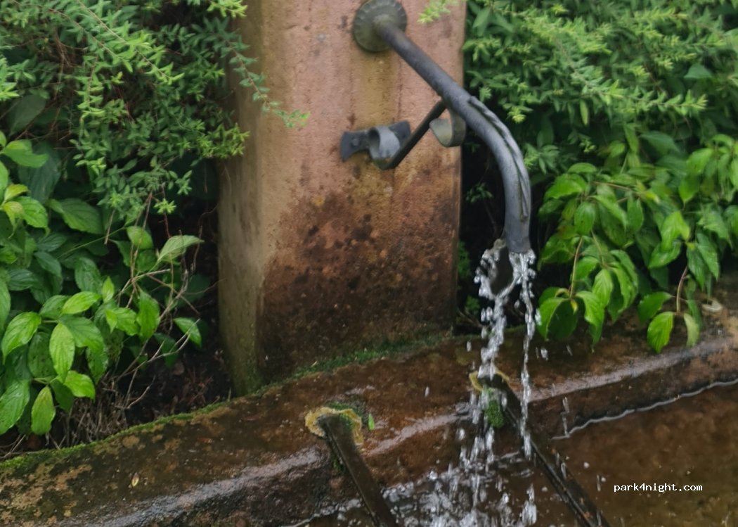 Fuente de agua potable pero sin grifo para llenado. Lo han quitado y han puesto un caño decorativo.
