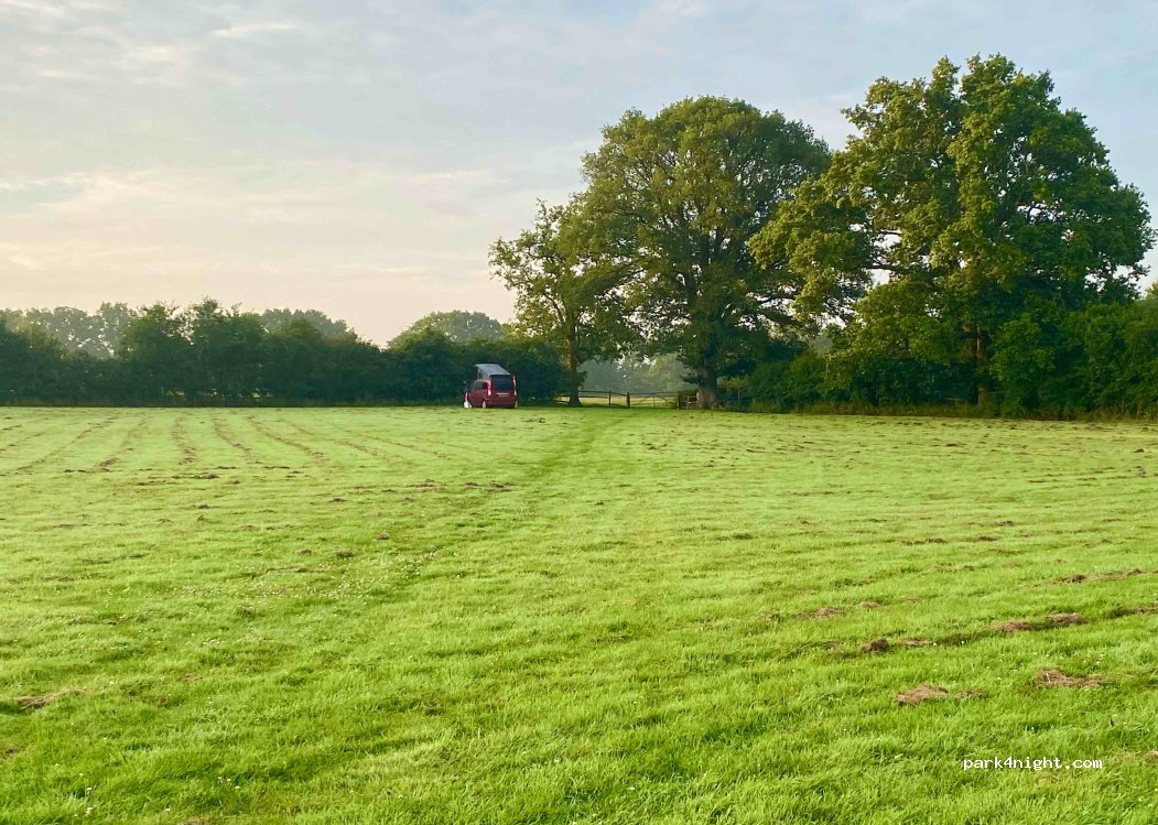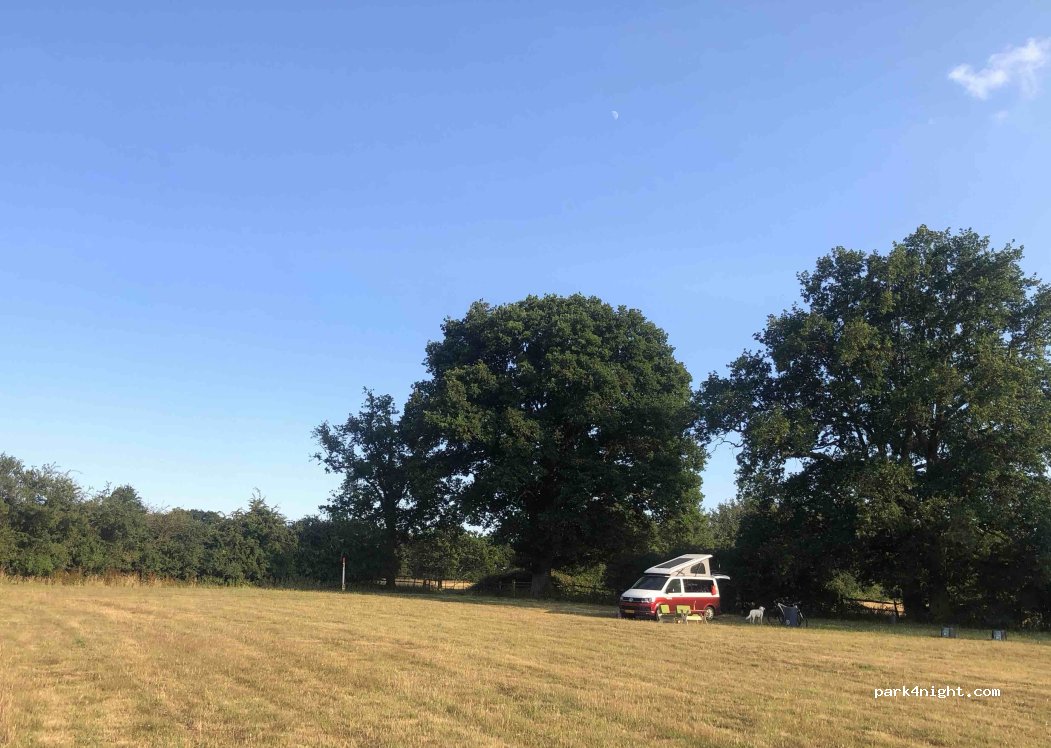 Wild camping spot with drinking water, toilet and chemical waste disposal point. Lots of public footpaths accessible from campsite. 1.2 miles from Headcorn village. Quiet spot in beautiful Kent countryside. 1 hour from Dover. 20 minutes from Ashford and Maidstone. Trains links to London taking 1 hour. Cash only in GB pounds.