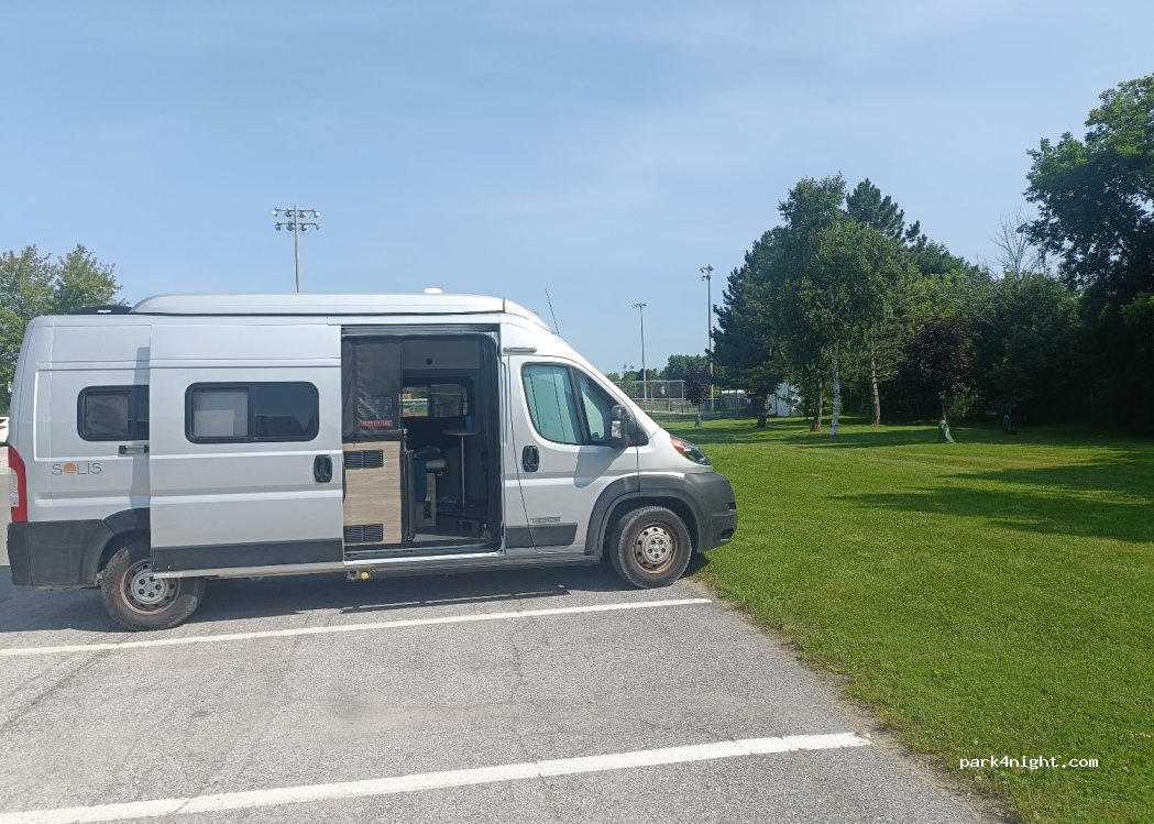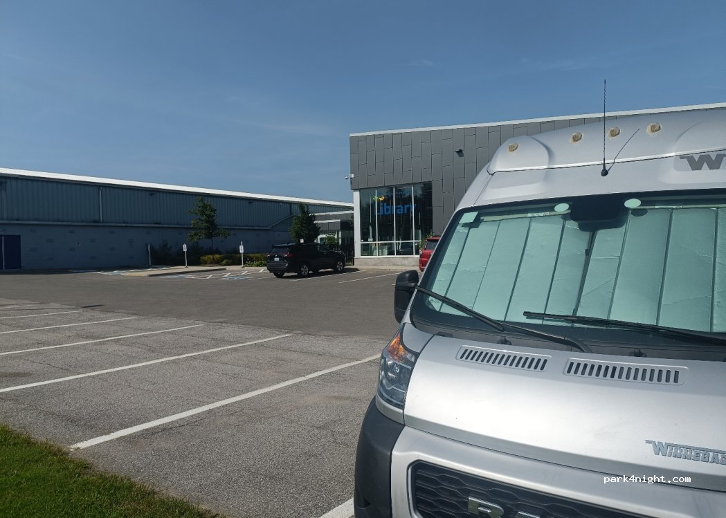 Grand parking derrière la bibliothèque publique, éloigné de la route.