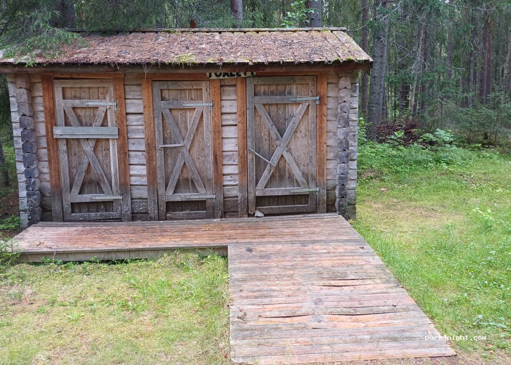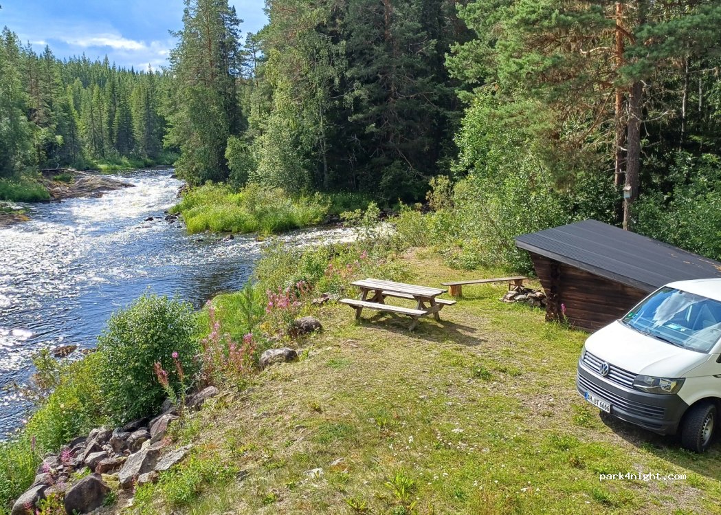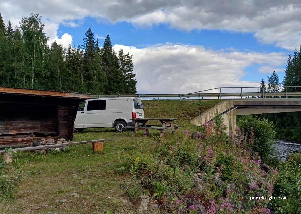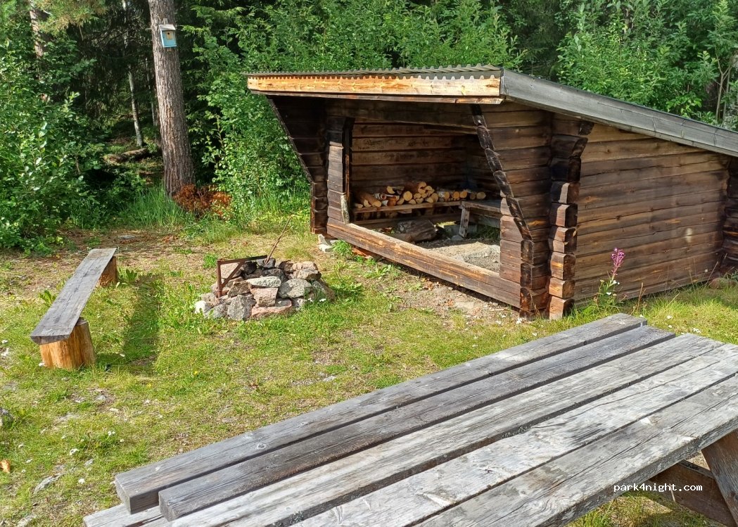 Very nice place to spend the night. Two rivers flow together and there is a small hut with a fire pit here. The only problem is that it is right next to the road and bridge. But you can see everything in the pictures. 100 meters further into the forest there is also an outhouse. At the back of the forest there is also a very nice place with a table.