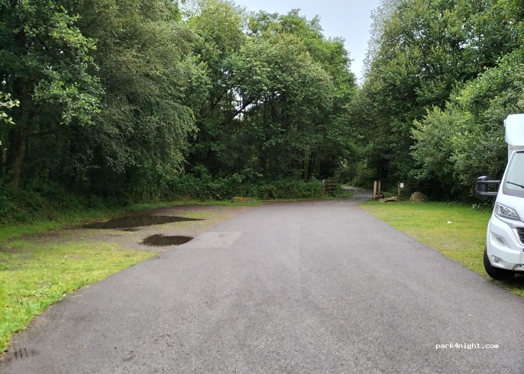 Ok site surrounded by trees, close to main road so traffic noise during day but quiet at night. 4G OK. Locals and tourists use the parkup to start their cycle along the Mawddach Trail