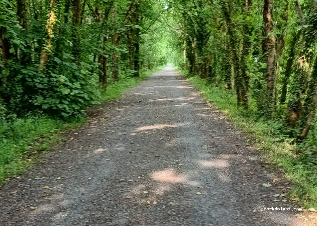 kleiner Parkplatz direkt am waldrand aber wir konnten mit unserem großen Wohnmobil gut parken. haben dort eine ruhige Nacht mit zwei anderen Campern verbracht. eigentlich ein Parkplatz für Wanderer und Radfahrer aber abends ist der Parkplatz leer und dann kann man sich gut hinstellen. von dort aus kann man natürlich auch eine Radtour unternehmen keinerlei Hinweisschilder auf irgendwelche Verbote.