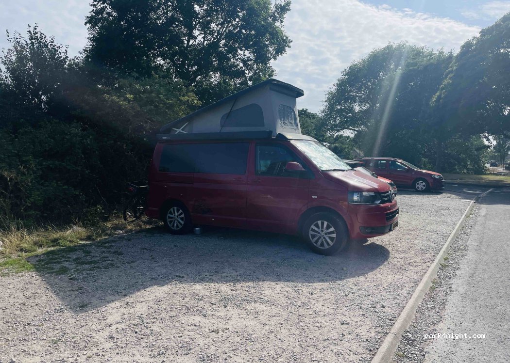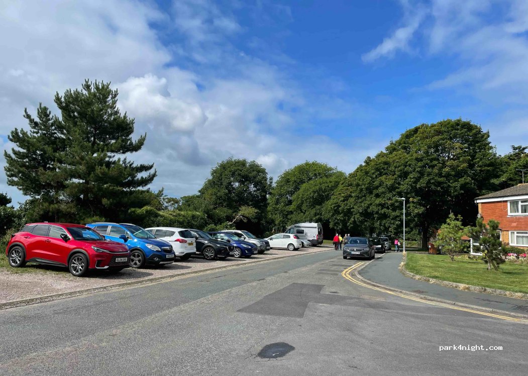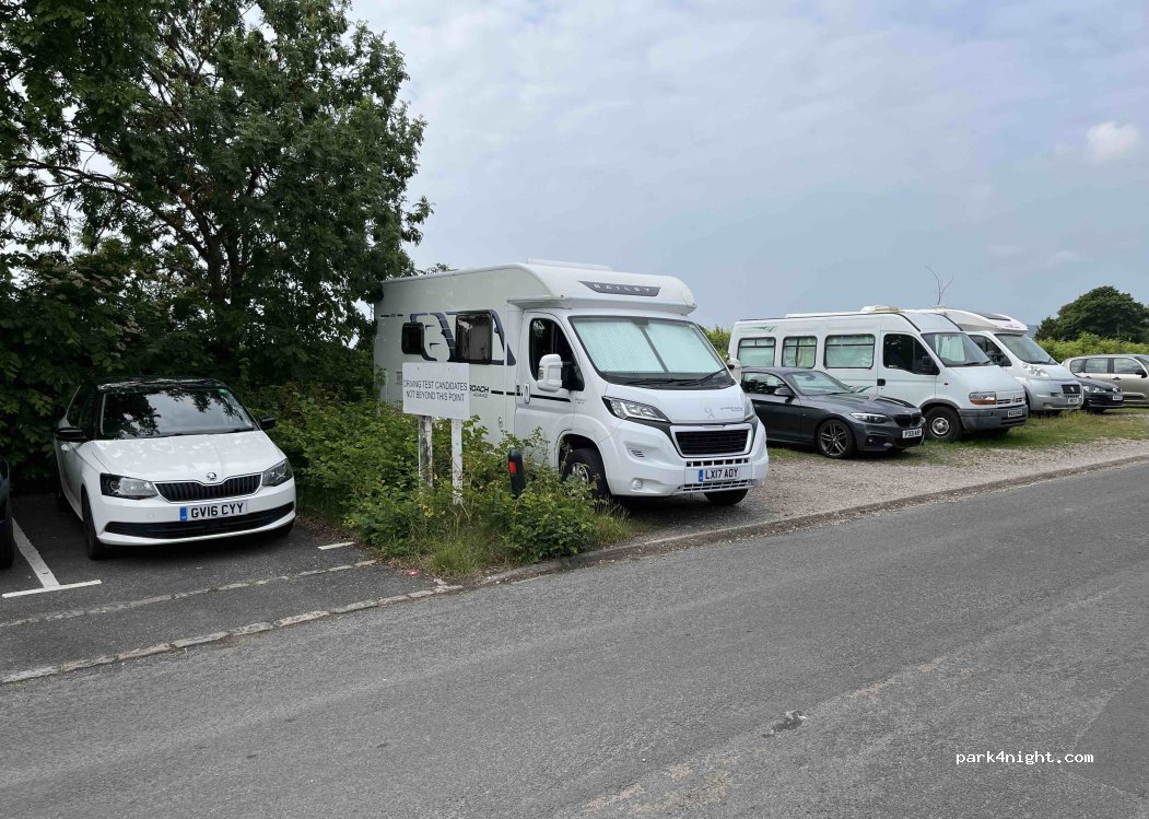 Great place to stop day or night. At the end of the road so no passing traffic. Next to park entrance and opposite housing area. Plenty of spaces for shorter vans - possibly 6 metres (we are 5 metres). Well used for park visitors, dog walkers and general day time parking. Didn’t see any parking restrictions. Quiet night - would use again.