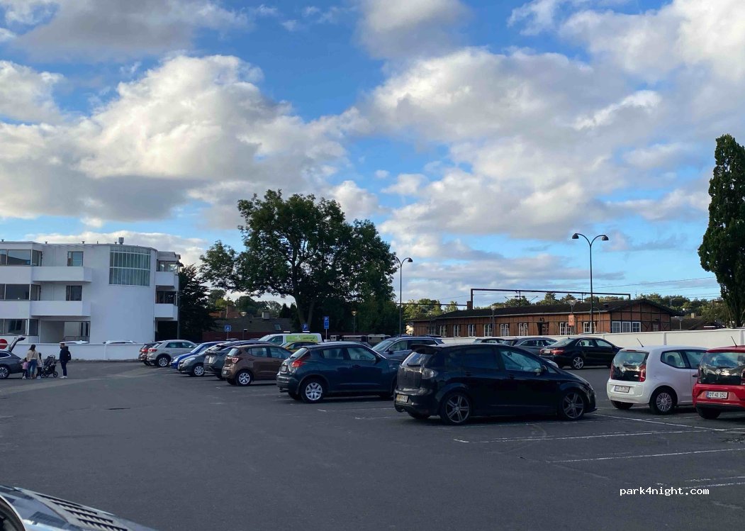 Grand parking à la gare , très pratique pour prendre le train et visiter Copenhague . que pour les vans pas pour les campings cars . En arrivant vendredi à 18 h le parking était presque vide . On y a dormi une nuit au calme .