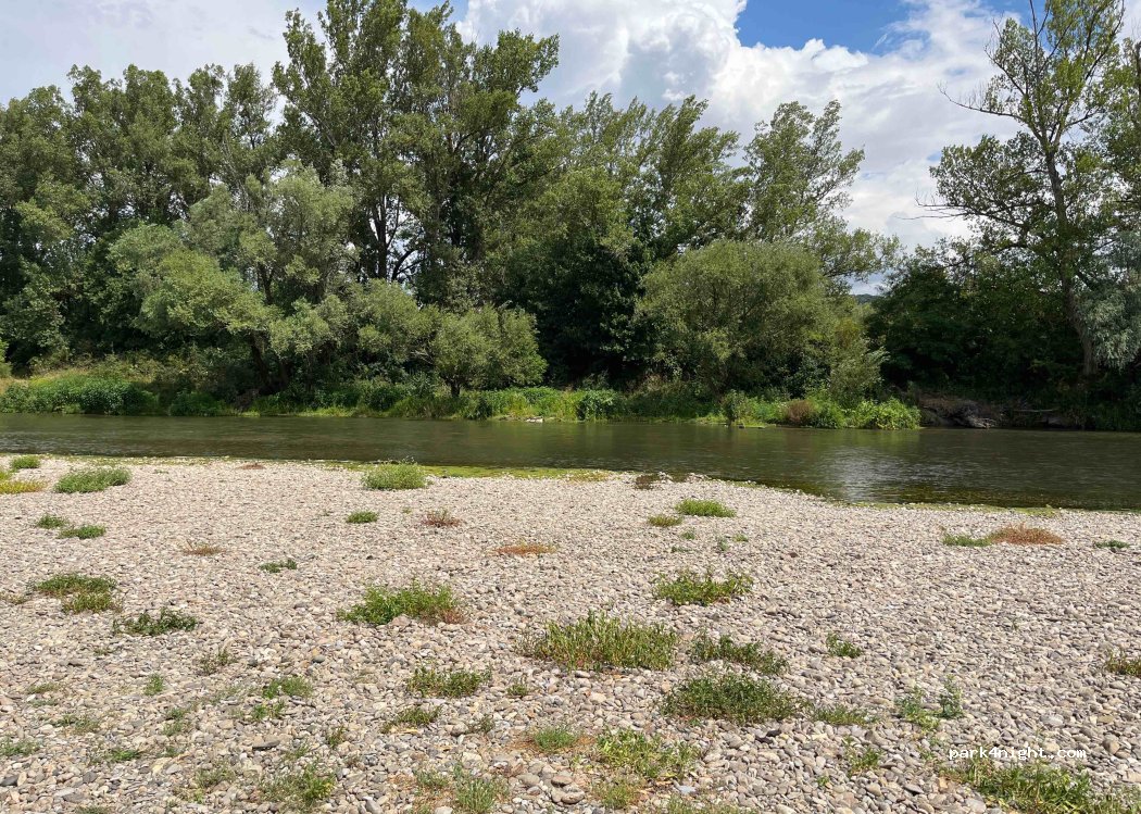 Wij hebben hier 3 nachten doorgebracht. Rustige en redelijk schone locatie in trek bij locale bevolking (met hond) maar niet druk. Wel vriendelijk. Rivier in augustus max 1 meter diep maar wel flink stromend water.
