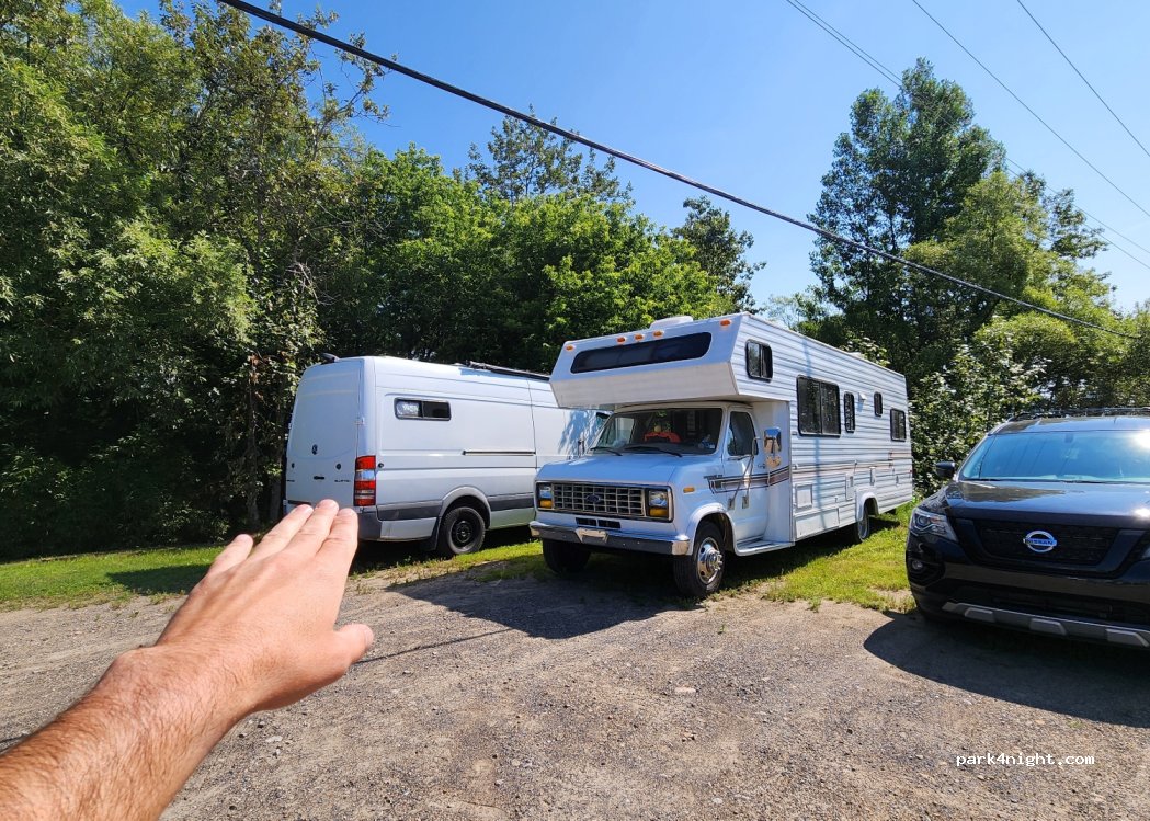 We parked two RVs to the right of the parking lot for one night.