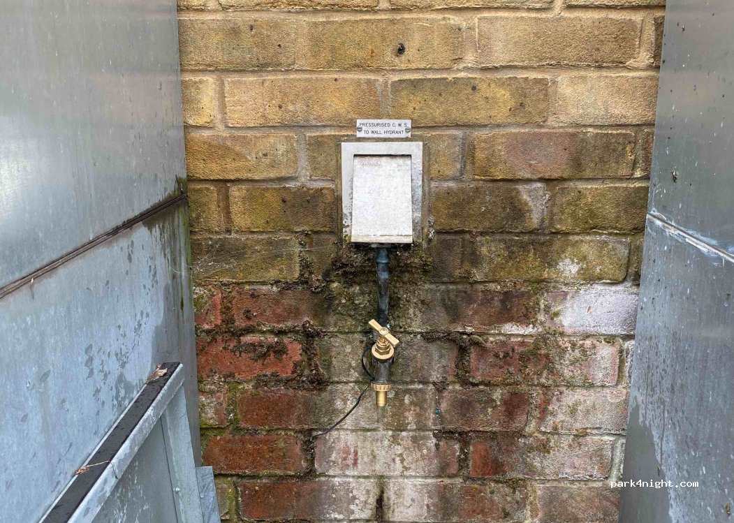 Tap outside the gas station. Between the 2 lockers. We asked the staff beforehand, mentioning that we were going to get gas. Calor gas butane bottles for sale too.