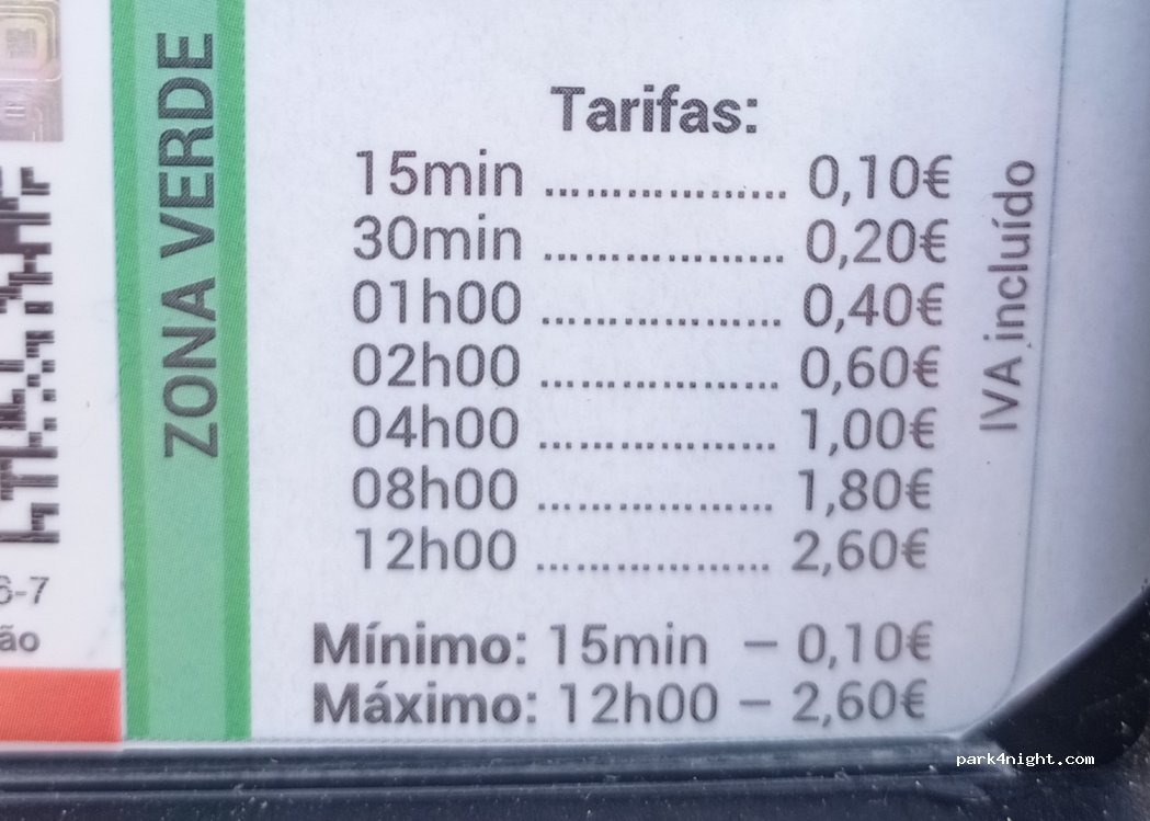 Parking public pour garer le camping-car, de 6 mètres de long, et visiter Sintra. Il n'y a aucun panneau indiquant que c'est réservé aux voitures (à Sintra, il y a des panneaux pour garer uniquement les voitures, n'essayez pas d'entrer ou vous le regretterez), vous pouvez donc laisser ici votre camping-car de 6 mètres de long (pas plus grand). J'ajoute une photo avec les prix, économique. Cela semble sûr, il y a des mouvements de personnes et des bâtiments à côté, ainsi que des arrêts de bus et une gare. Pour vous déplacer dans Sintra, il existe un bus à arrêts multiples circulant 24 heures sur 24, qui peut être acheté à Sintra Satation, à environ 10 minutes à pied d'ici. Si vous l'achetez en ligne, vous devez quand même vous rendre à cet arrêt pour le valider, il est donc préférable de l'acheter à l'arrêt indiqué.