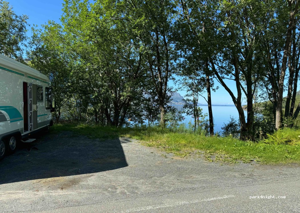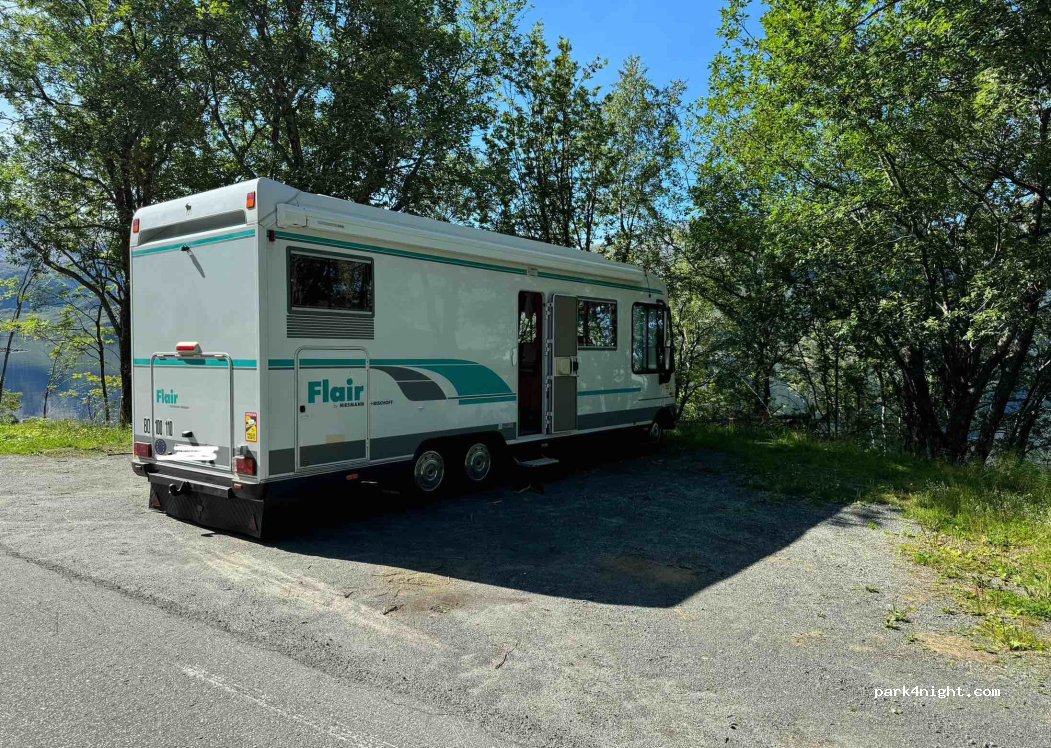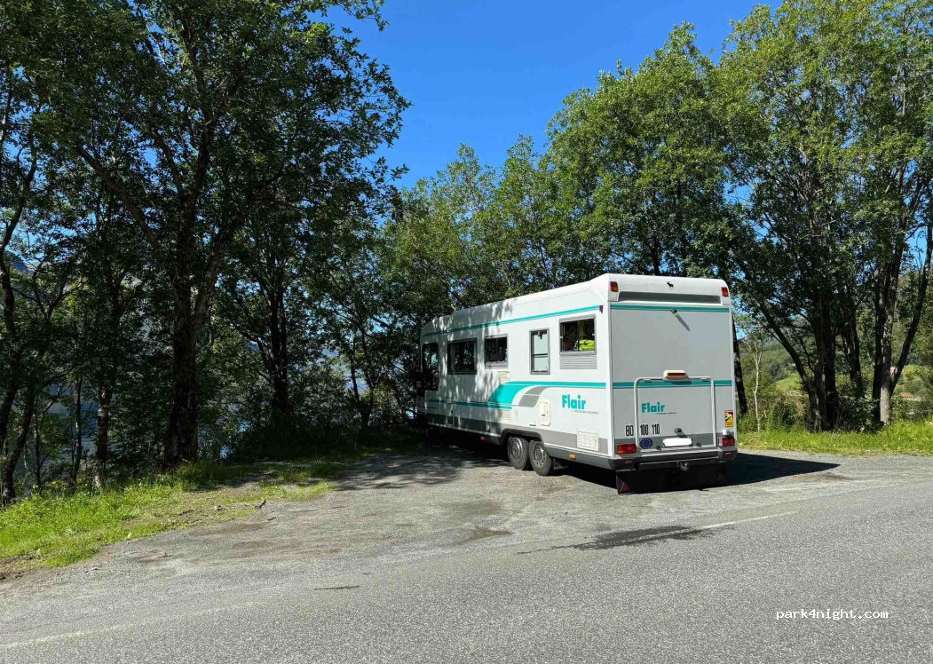 Une place de parking sur le bord de la route, assez profonde pour se garer en perpendiculaire de la route, cela dépanne bien pour la nuit !