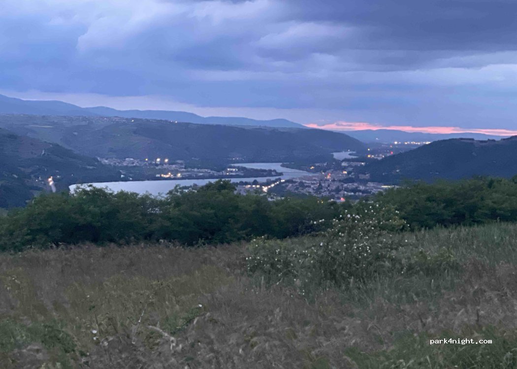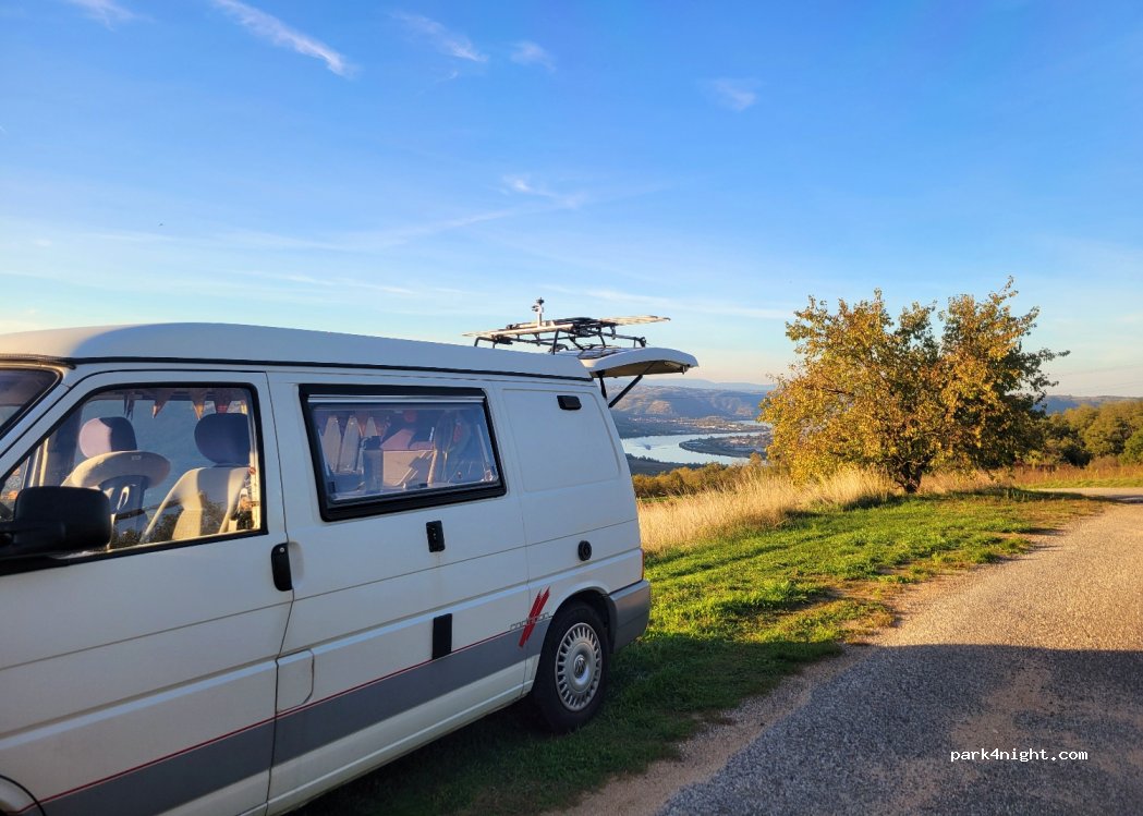 Une vue époustouflante sur la vallée du Rhône, un spot hyper calme. Nous étions trois vans/fourgons mais on ne s’est pas dérangés. C’était juste un stop sur notre route mais ça valait le petit détours par les lacets (nous sommes arrivés par le nord, accès plus difficile mais en van et en fourgon, ça passe sans soucis). Nuit forcément très calme et un coucher de soleil magnifique !