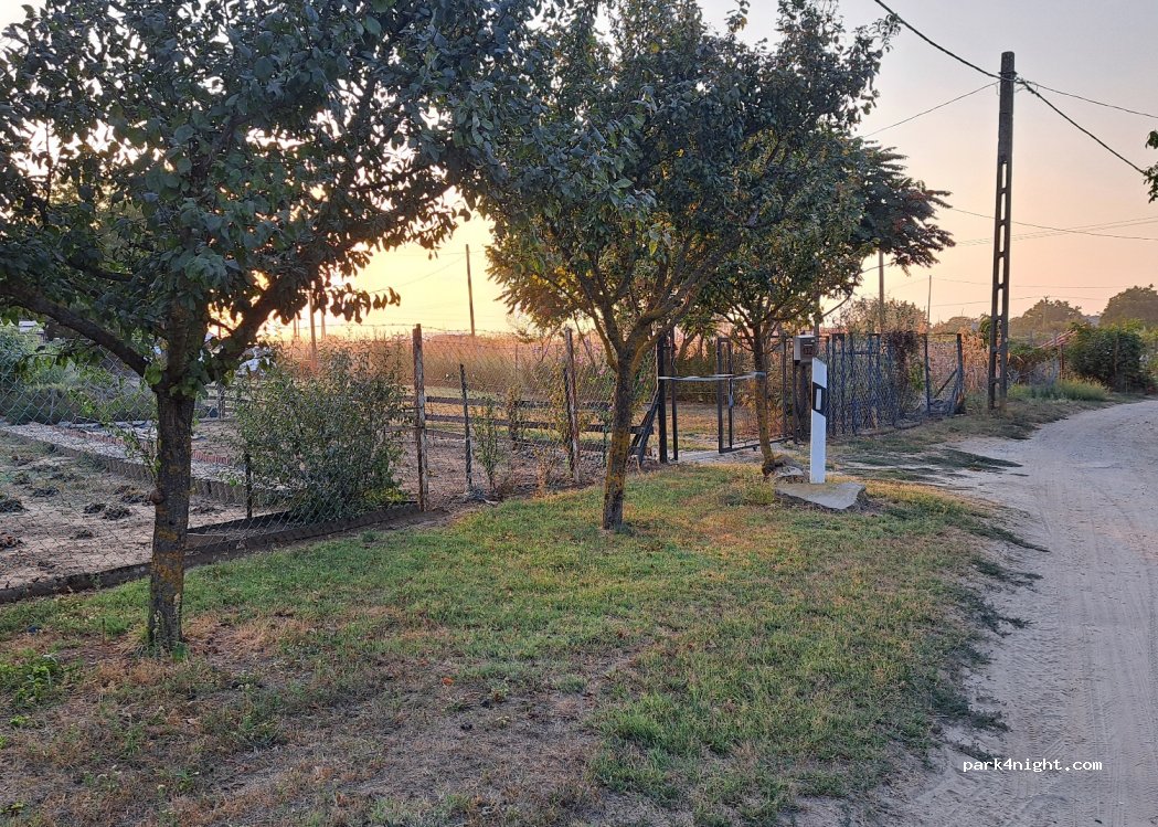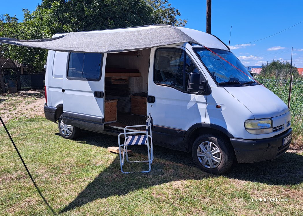 Place de parking privée pour une nuit. De Pâques à octobre. Si vous le souhaitez, vous pouvez obtenir de l'électricité et de l'eau (pas d'eau potable). La nuitée est payante. Le lieu est clôturé et le numéro de téléphone du propriétaire se trouve à l'entrée.