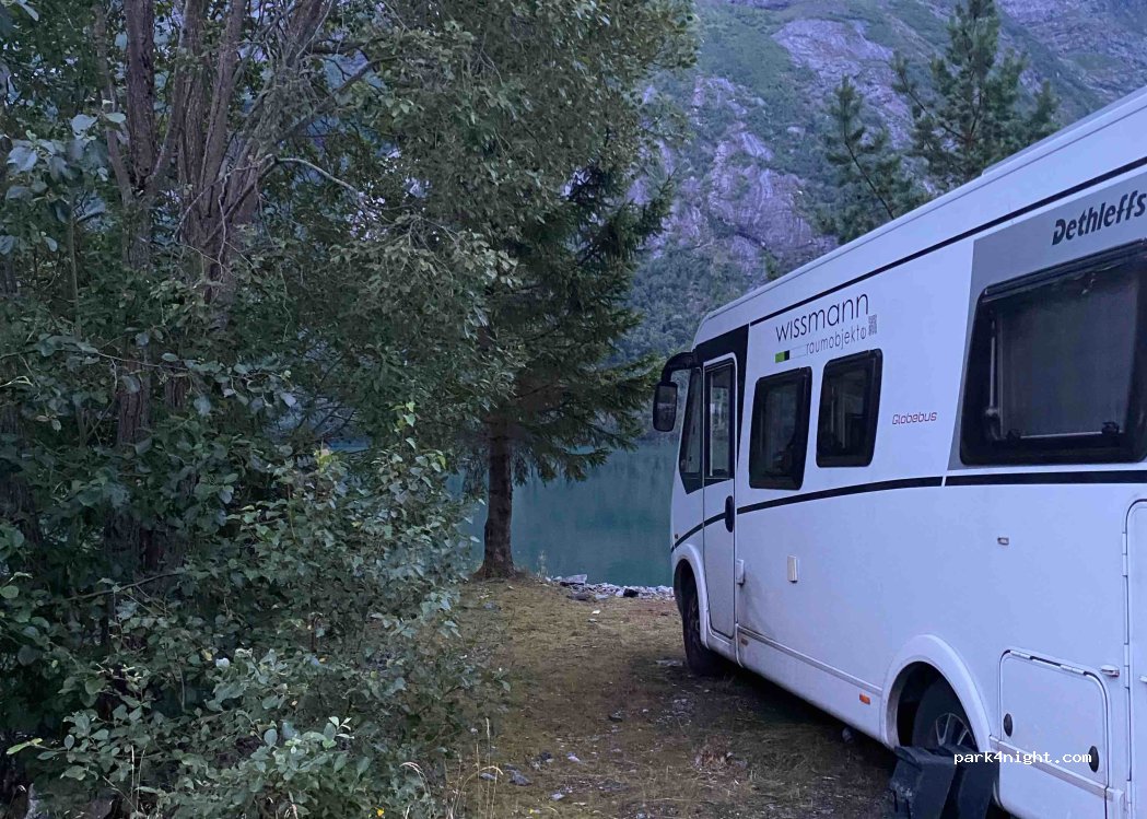 Emplacement pour camping-car juste à côté de la route. L'endroit est sympa, mais la route est bruyante.