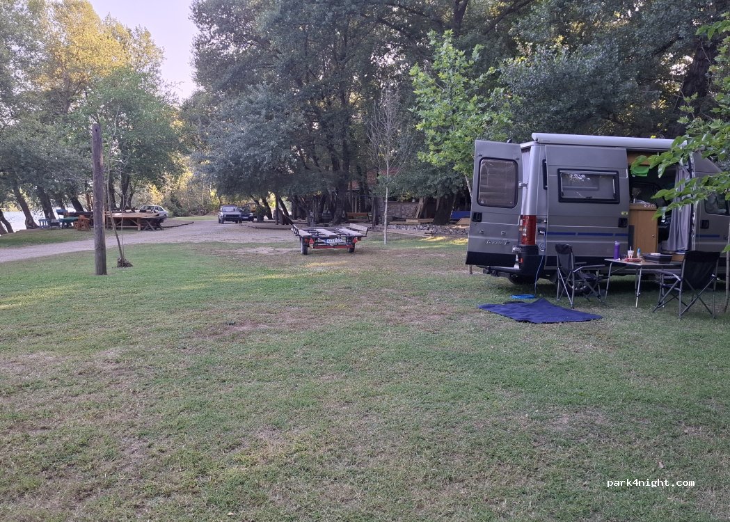Lugn och trevlig plats. Vi skulle övernatta en natt men blev tre nätter. Lätt att cykla omkring. God mat på restaurangen. Bra ställe att simma och koppla av. Rekommenderar! 10 euro med el. Dusch och toalett enkla men fungerande.