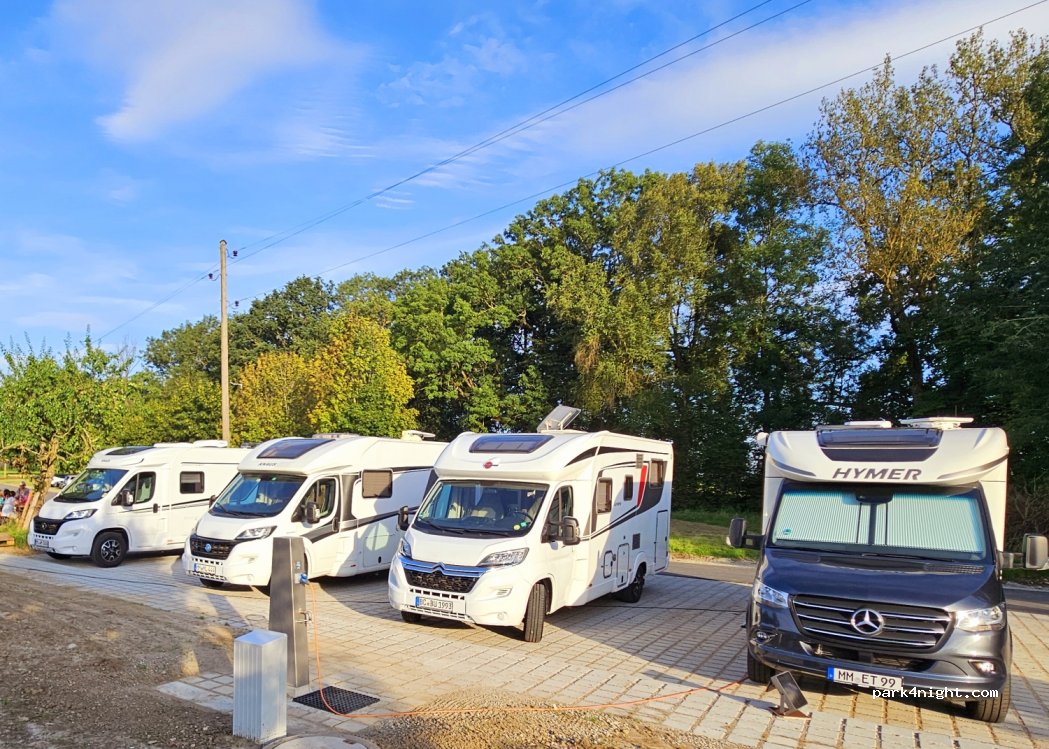 The newly opened RV parking space is located on the grounds of the beautiful Gut Westerhart Golf Club. The parking space is suitable for up to 6 RVs. There is a paid electricity connection and a fresh water filling station. It is great that you can use the golf club's social rooms. The restaurant is highly recommended as it has a beautiful terrace and the food is exceptionally good.