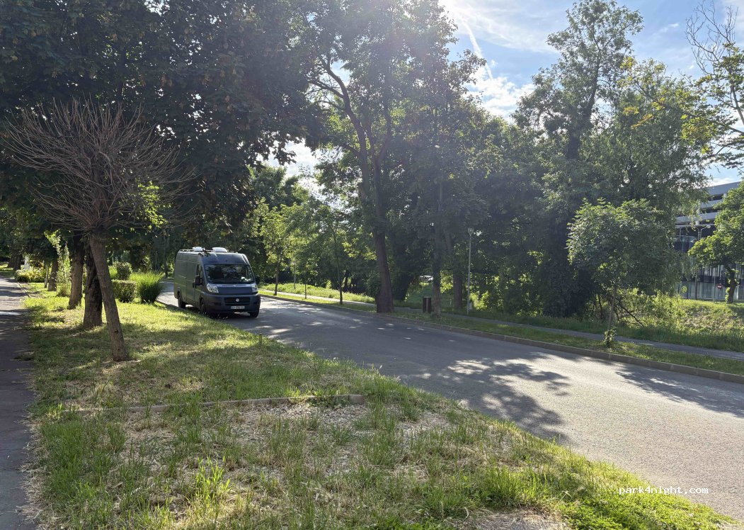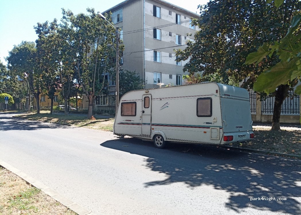Places de parking le long de la route à Timișoara. Il y a un panneau un peu plus loin avec les instructions pour payer le parking. Les places sont payantes 0,30€ pour 1h.