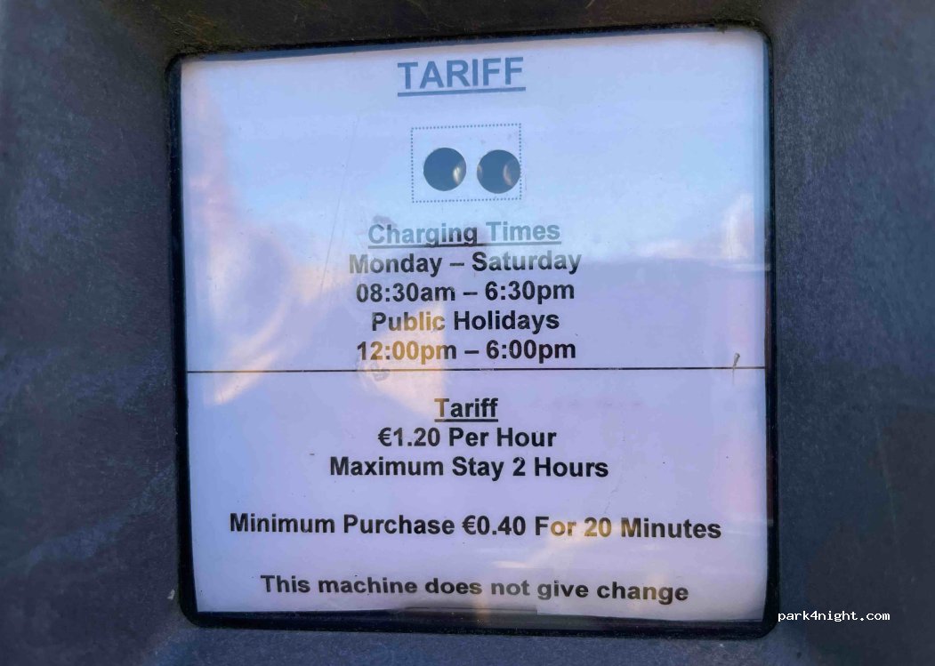 €1.20/hour applies mon-sat 8.30am - 6.00pm 2 hour