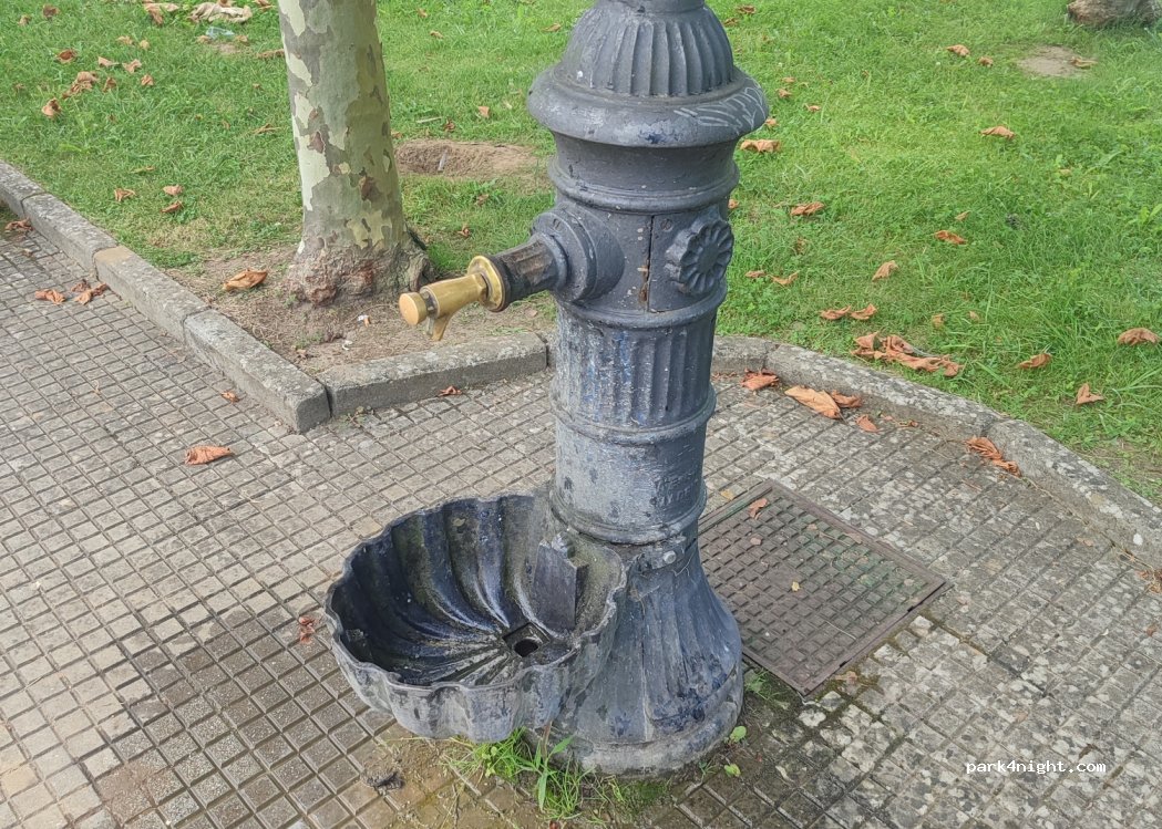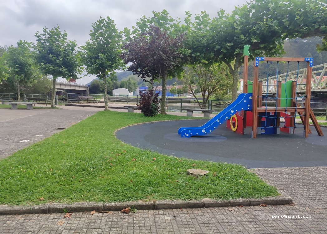 Pequeño aparcamiento con zona de juegos y punto de agua. ideal para hacer un picnic y recargar tus botellas de agua, ducha solar o bidón.
