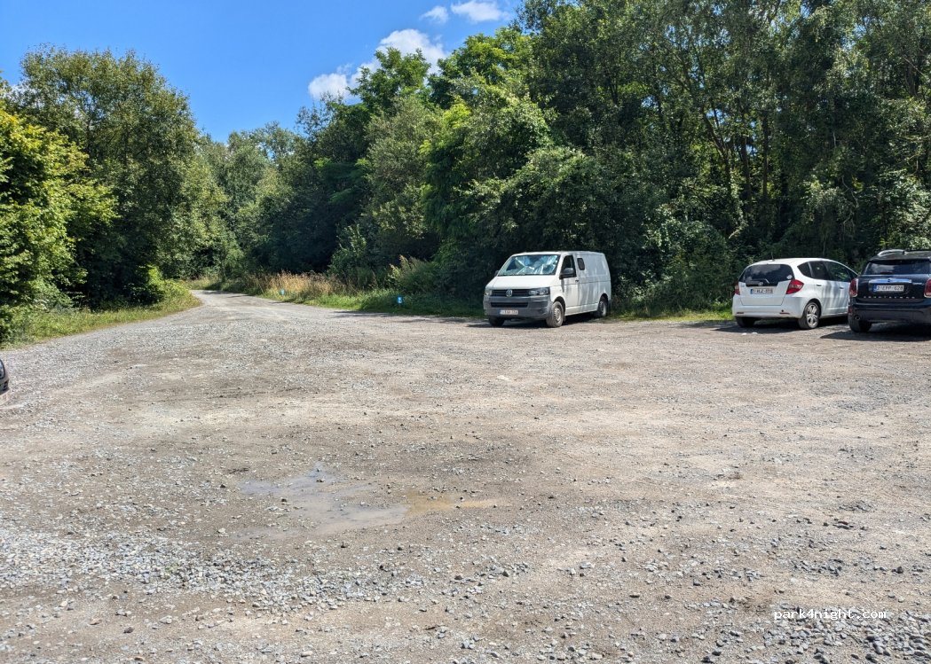 3 parkeerplaatsen: Eén net na het kruispunt waar de locatie aangegeven staat, één helemaal aan het einde bij het begin van de wandelingen en één in het midden.