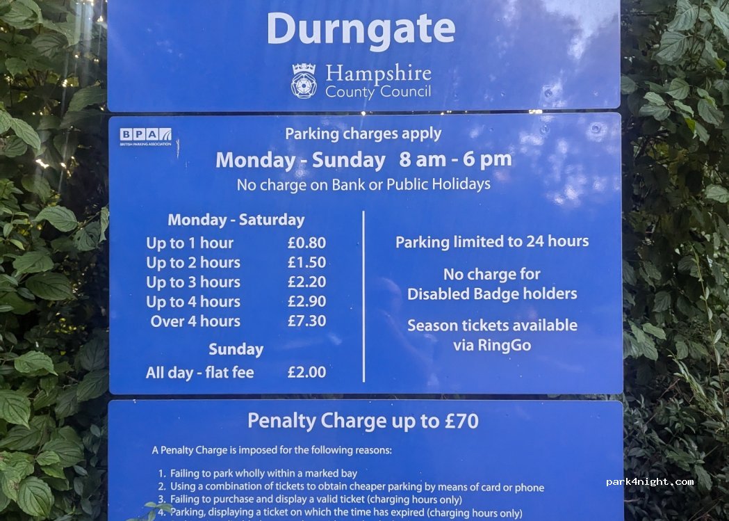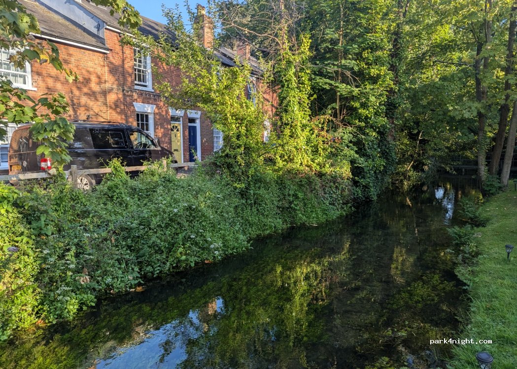On road parking or camping within a dead end street. Free after 6pm single yellow. Small parking area with no facilities. Next to a pub and a chalk stream. Central to Winchester town center and very quiet. A real secret spot but space is limited. Additional paid parking is available across the road in durngate parking if the spot is full. There's no height limit but if you're bigger than a VW camper it's better to park in the car park as the lane is narrow. Free trout chalk stream fishing all the way down the river as it's public land. Just have a rod license and expect to be challenged. Locals do it all the time but I suggest you do your own research.