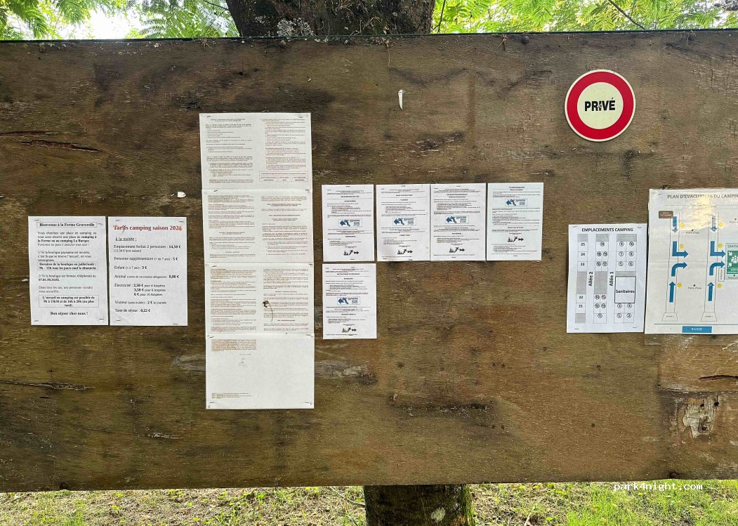 Aire de camping naturelle en pleine forêt au bord d une rivière appartenant à la Ferme Graverolle. 25 emplacements très spacieux avec sanitaires dans leurs jus mais très propres. Endroit très calme bercé par le champs des cigales. Bourg du village a 800m à pied. Possibilité également de séjourner au camping à la ferme pour les mêmes tarifs. Accès à la piscine et à la boutique du camping ( vente de fruits et légumes de la ferme et autre produits régionaux). Pas de vidange des eaux grises mais possibilité de vidange des cassettes dans le local technique des sanitaires avec accord des propriétaires qui sont adorables et arrangeants.
