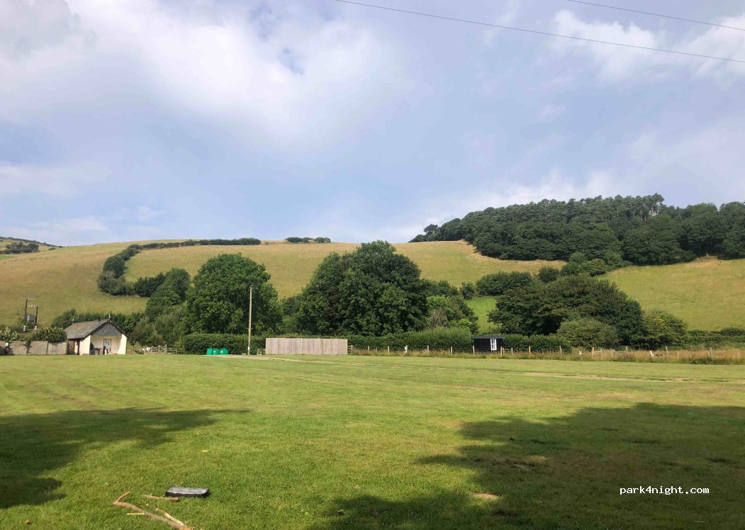 Ruime camping van de National Trust. We betaalden £12 per persoon per nacht inclusief diensten. Heel rustig, omgeven door heuvels. Douches met (te) heet water. Wie een grote camper heeft kan niet over het stenen brugje, maar moet door de rivier rijden op een verharde piste. We deden dit zonder probleem.