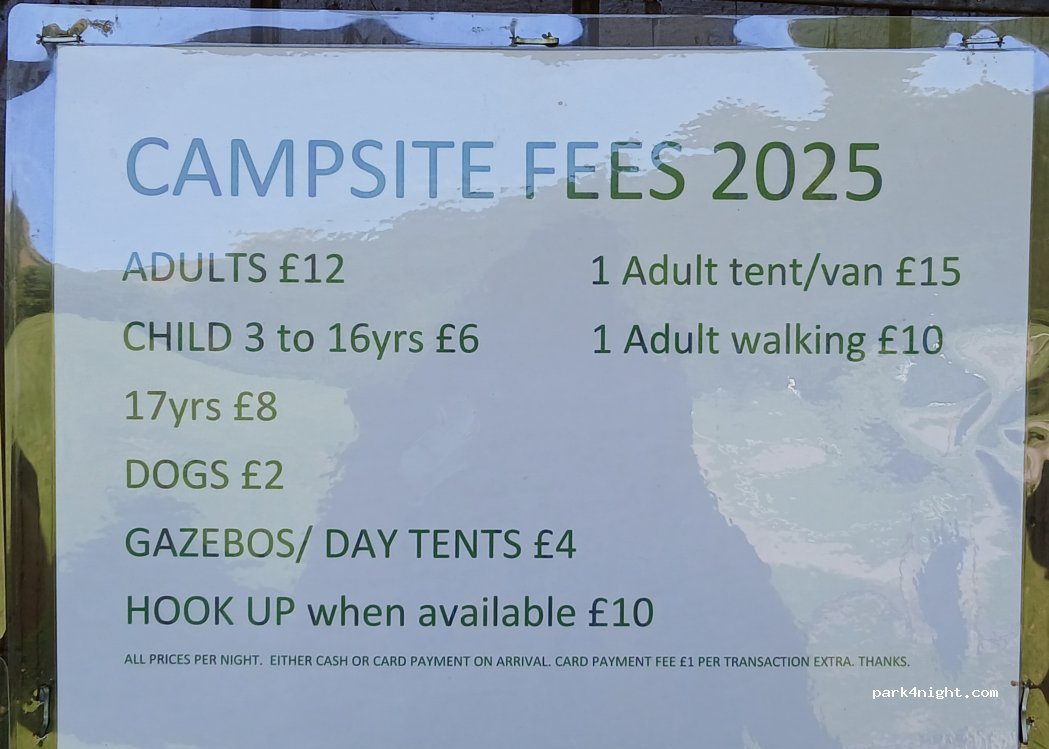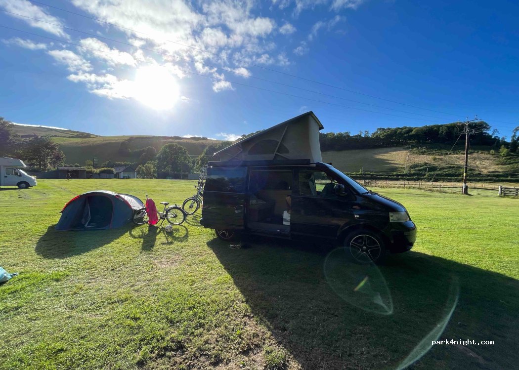 Een heerlijke camping aan een rivier. Wel een smalle weg om er te komen. Je betaalt met cash geld aan een dame die de camping onderhoudt. £12 voor een volwassene en £5 voor een kind. Elektriciteit is we schaars. Er zit een tearoom bij met een leuke natuur speeltuin. Je hebt er overigens geen last van. Een aanrader!