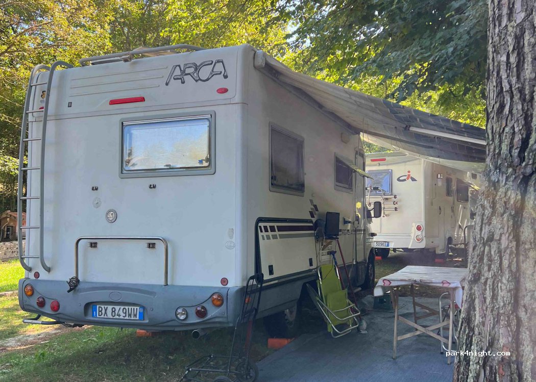 Camping L'Aurora. Available Bar/restaurant, food, small market, newspapers and tobacconist. Swimming pool included in the price, hot showers €0.5